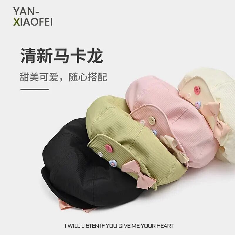 ese 甘いホットガールベレー帽秋/冬ボタン弓かわいい飾る sboy キャップトレンディアクセサリー リボン 大人ガーリー スウィート キュート カジュアル オータム 秋物 ウィンター 冬物 ベレット ヘアアクセサリー