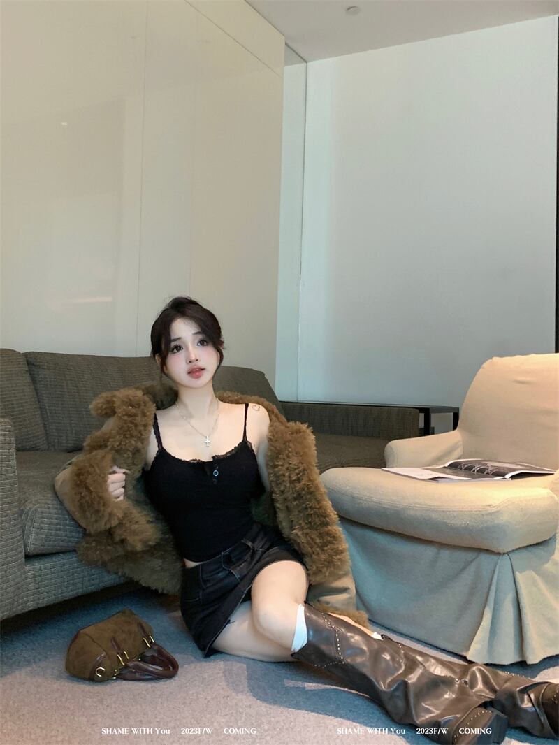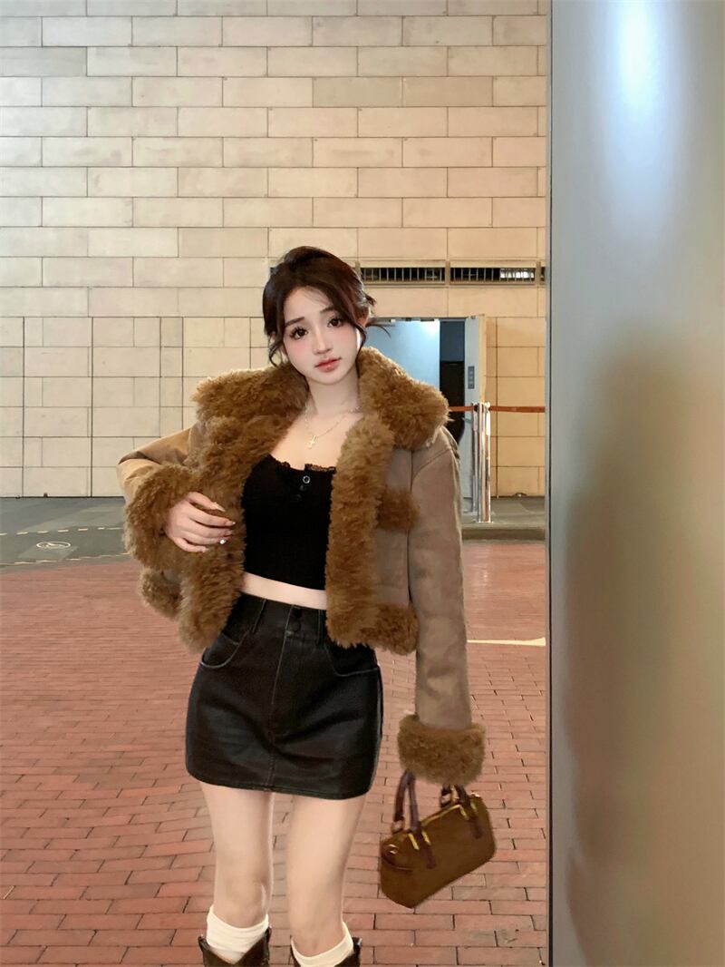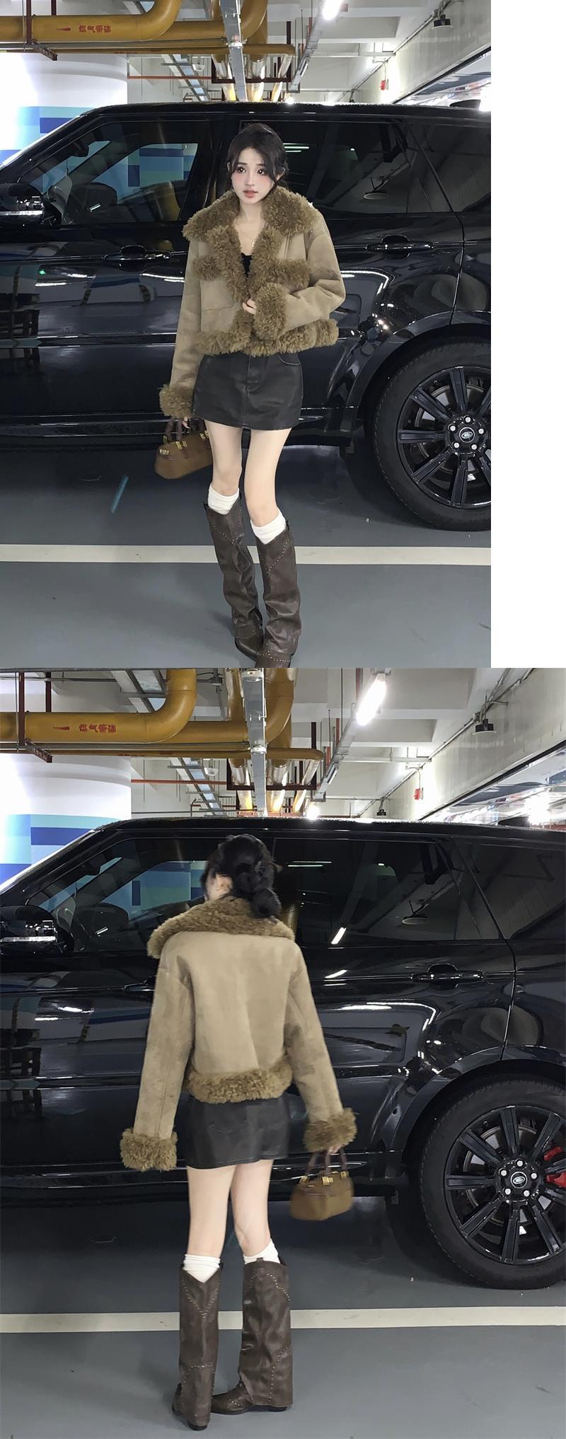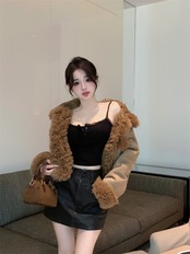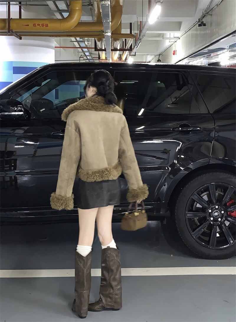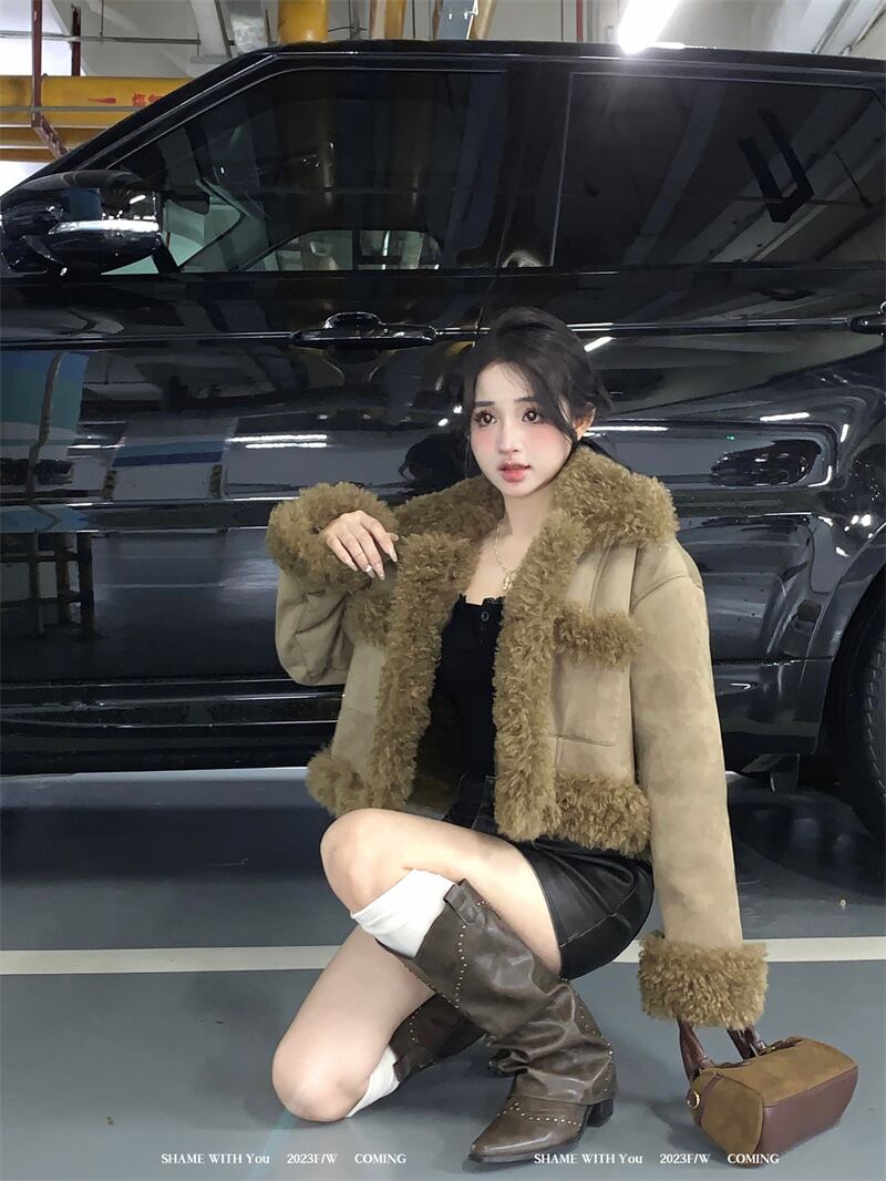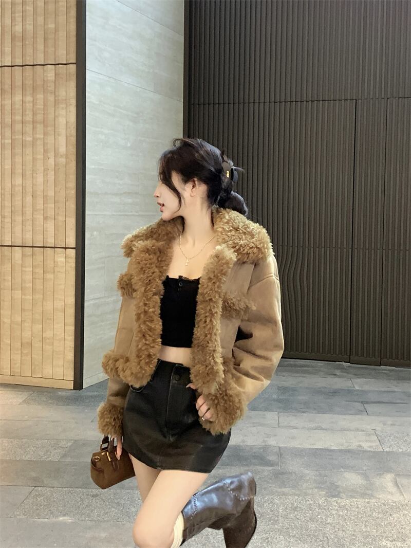甘いホットガールフェイクファーオートバイジャケット秋と冬ルーズで厚みある長袖ショートジャケット ロング 大人ガーリー スウィート キュート カジュアル オータム 秋物 ウィンター 冬物