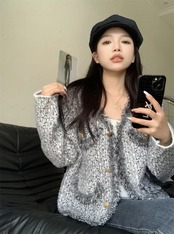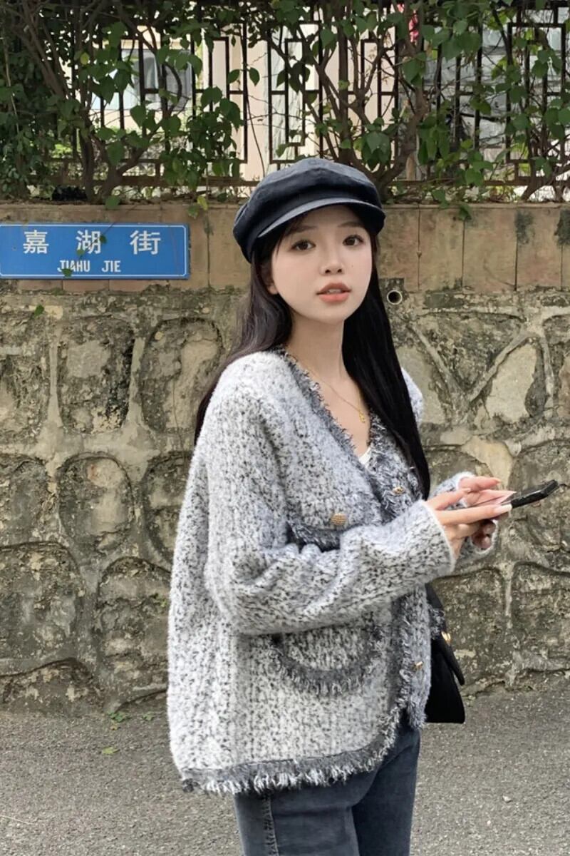 甘いホットガール電話エッジメタルバックル V ネックジャケット秋ルーズフィットエンドコートトップ 大人ガーリー スウィート キュート カジュアル オータム 秋物 Vネック