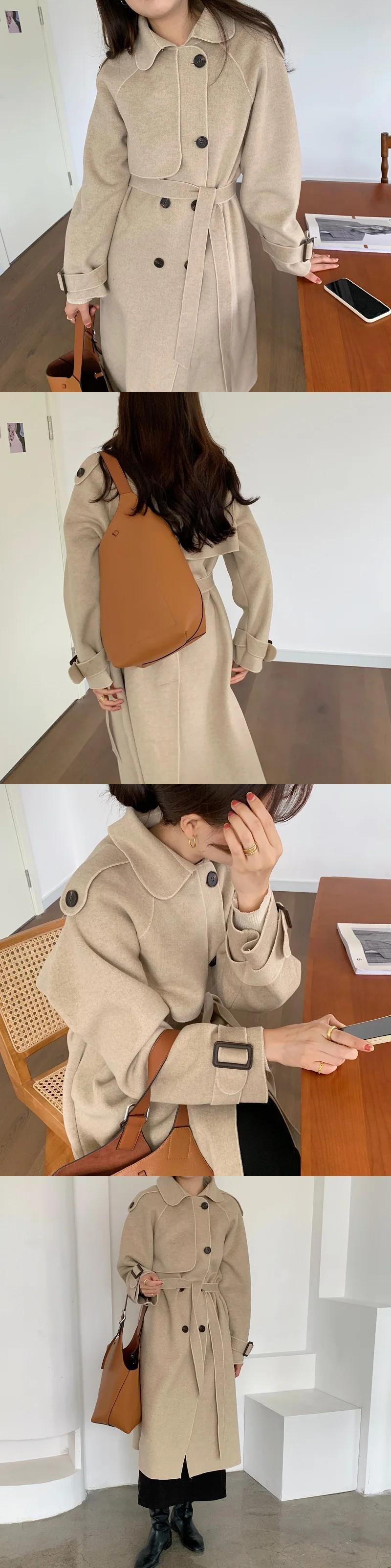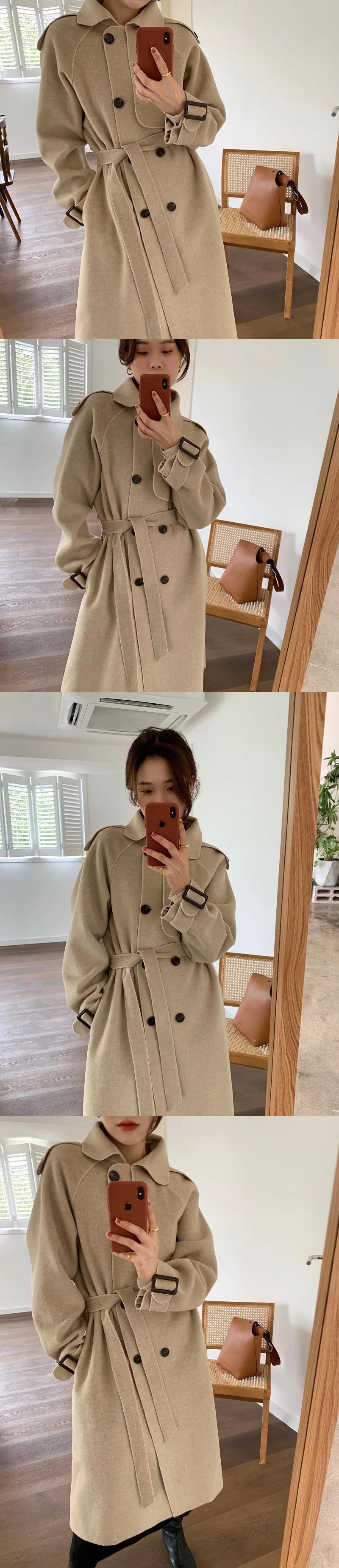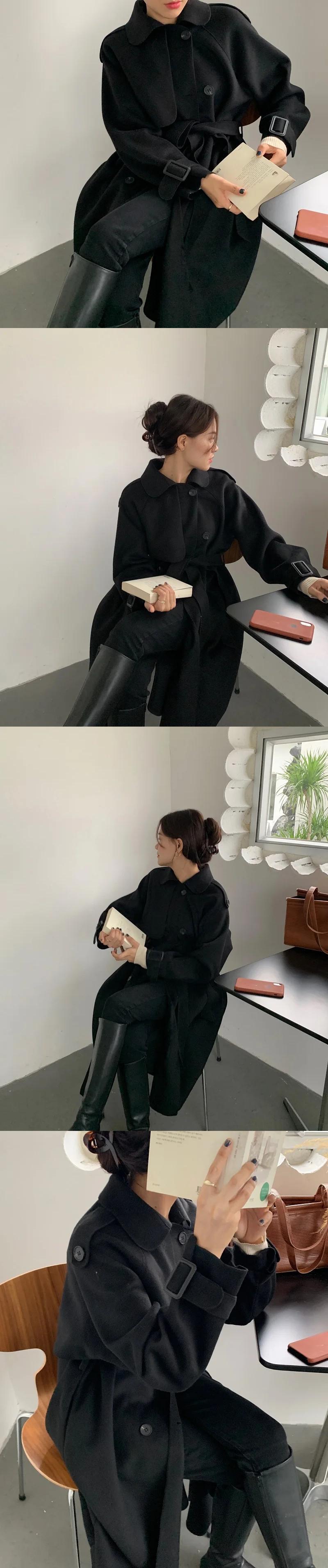 オフィスレディレトロラペルダブルブレストコート秋と冬レースアップスリムフィットロング両面ウールコート オータム 秋物 ウィンター 冬物 会社 学校 通勤や通学にも