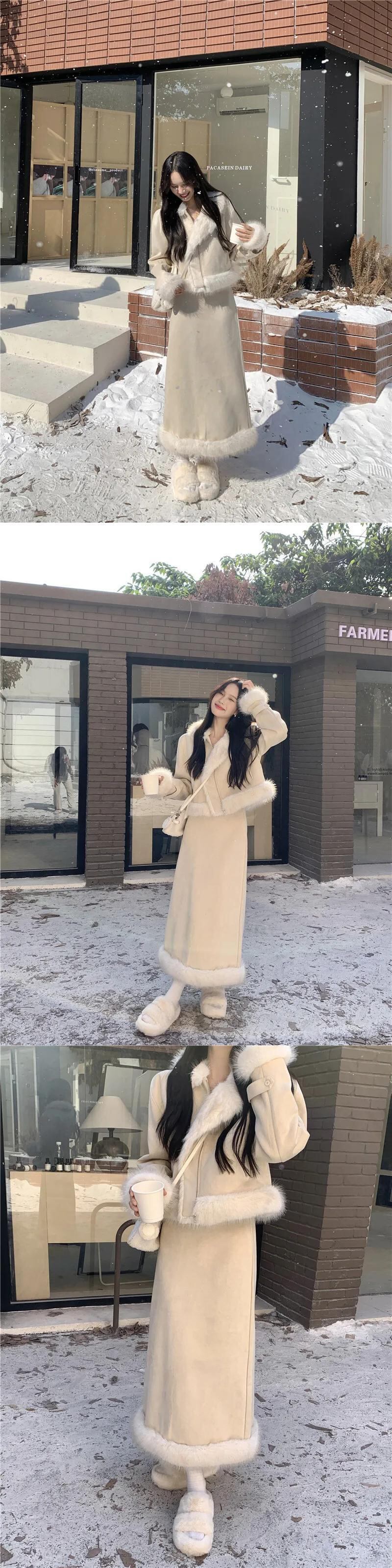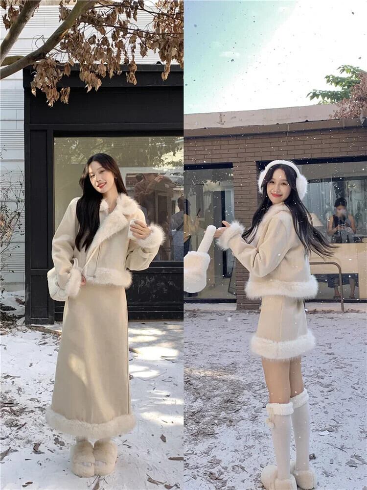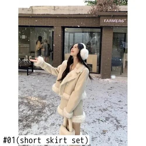 甘いホットガールスーツ秋と冬肥厚ショートコットンジャケットミニスカートツーピースセット 大人ガーリー スウィート キュート カジュアル オータム 秋物 ウィンター 冬物