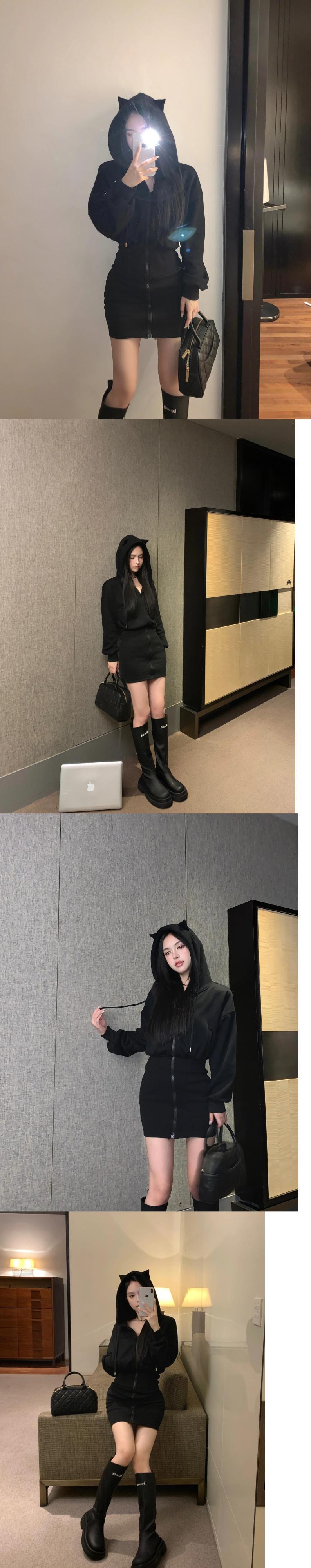 甘いホットガールフード付き長袖ドレス秋スリムフィットジッパーラップヒップショートドレス ロング 大人ガーリー スウィート キュート カジュアル オータム 秋物