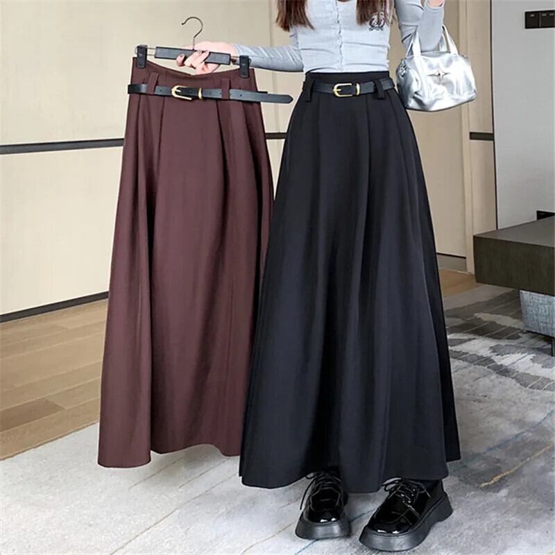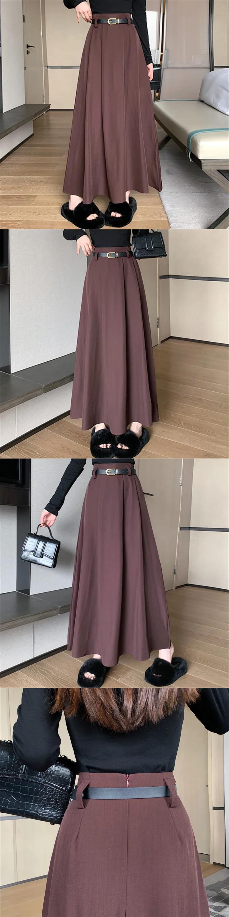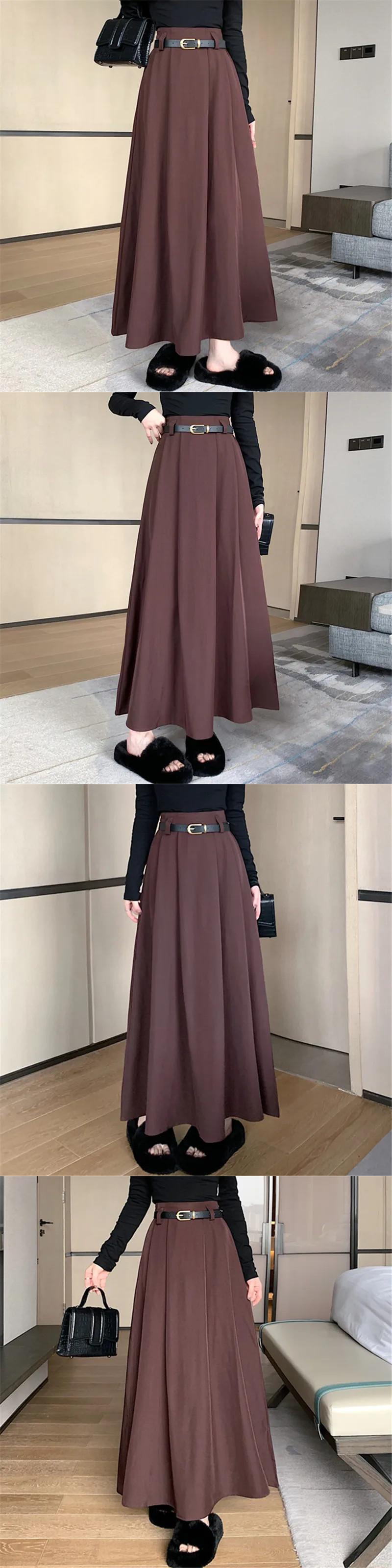 フレンチスイートホットガールプリーツスカートレディース秋冬ウエストAラインミドル丈スカート 大人ガーリー スウィート キュート カジュアル オータム 秋物 ウィンター 冬物