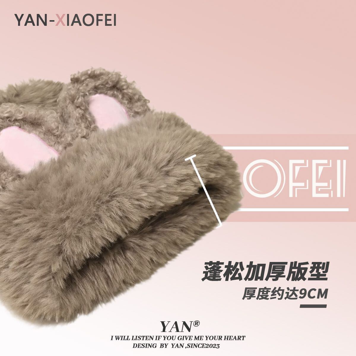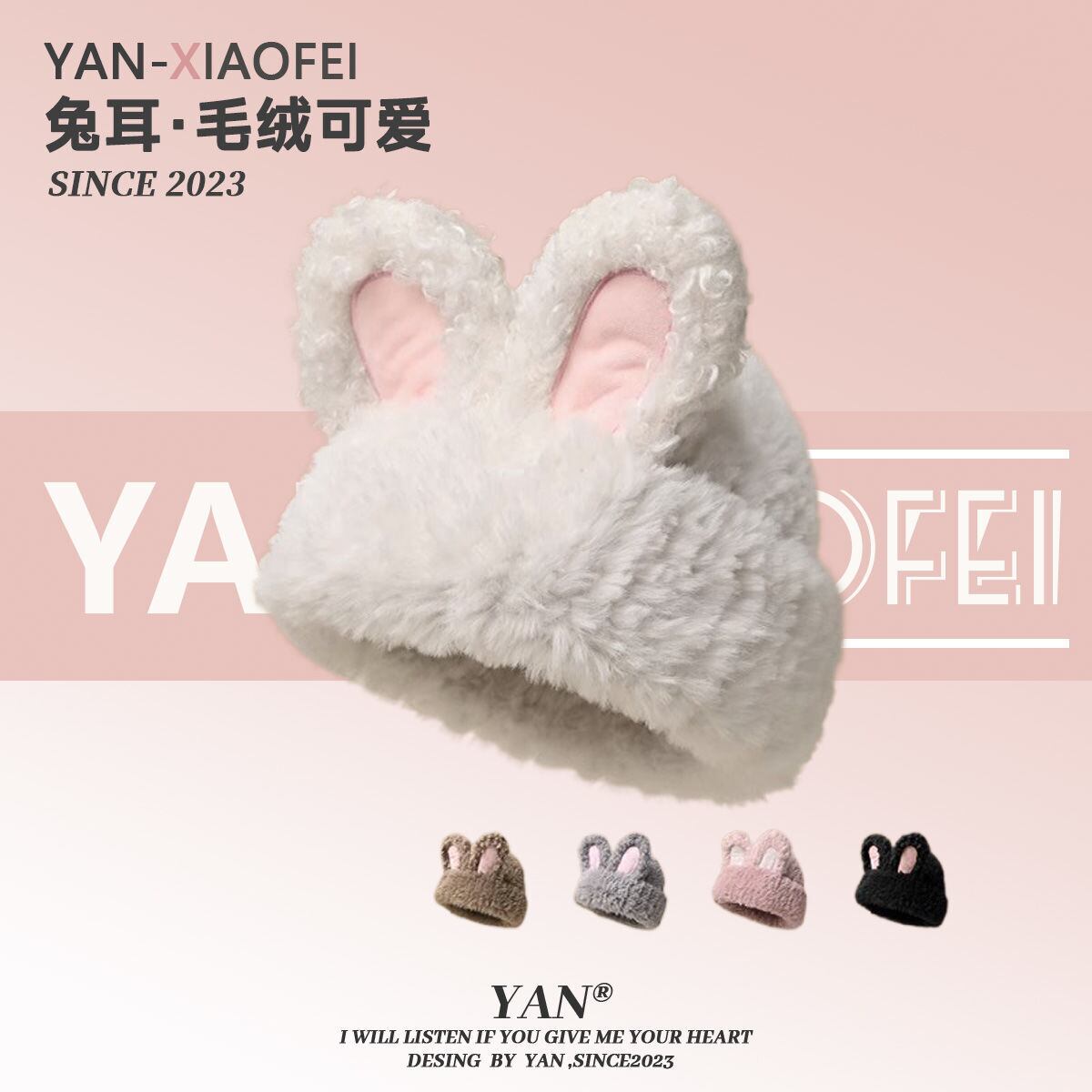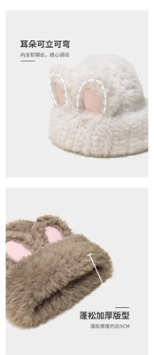 甘いホットガールかわいいウサギ耳ビーニー秋/冬ふわふわ白毛皮よう暖かいビーニートレンディアクセサリー ホワイト 大人ガーリー スウィート キュート カジュアル オータム 秋物 ウィンター 冬物