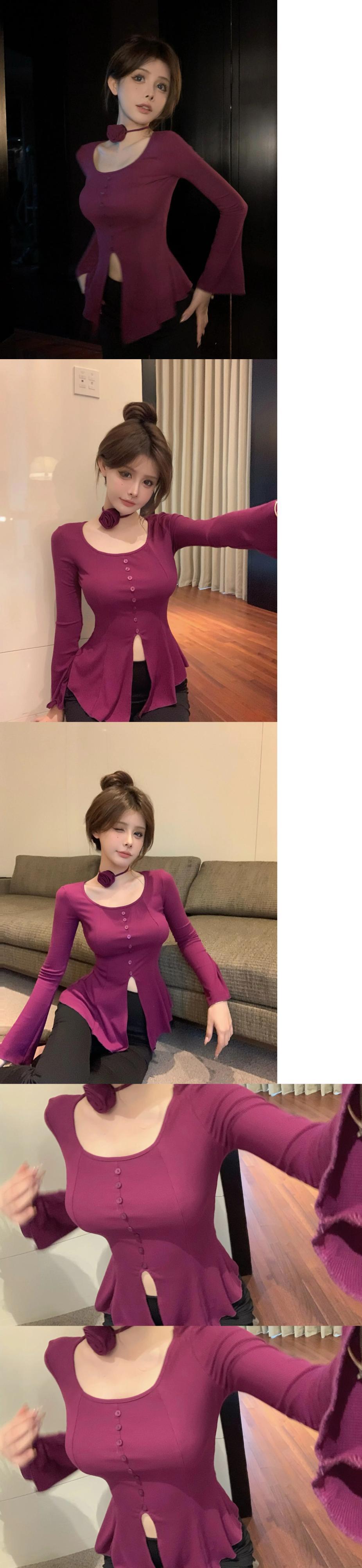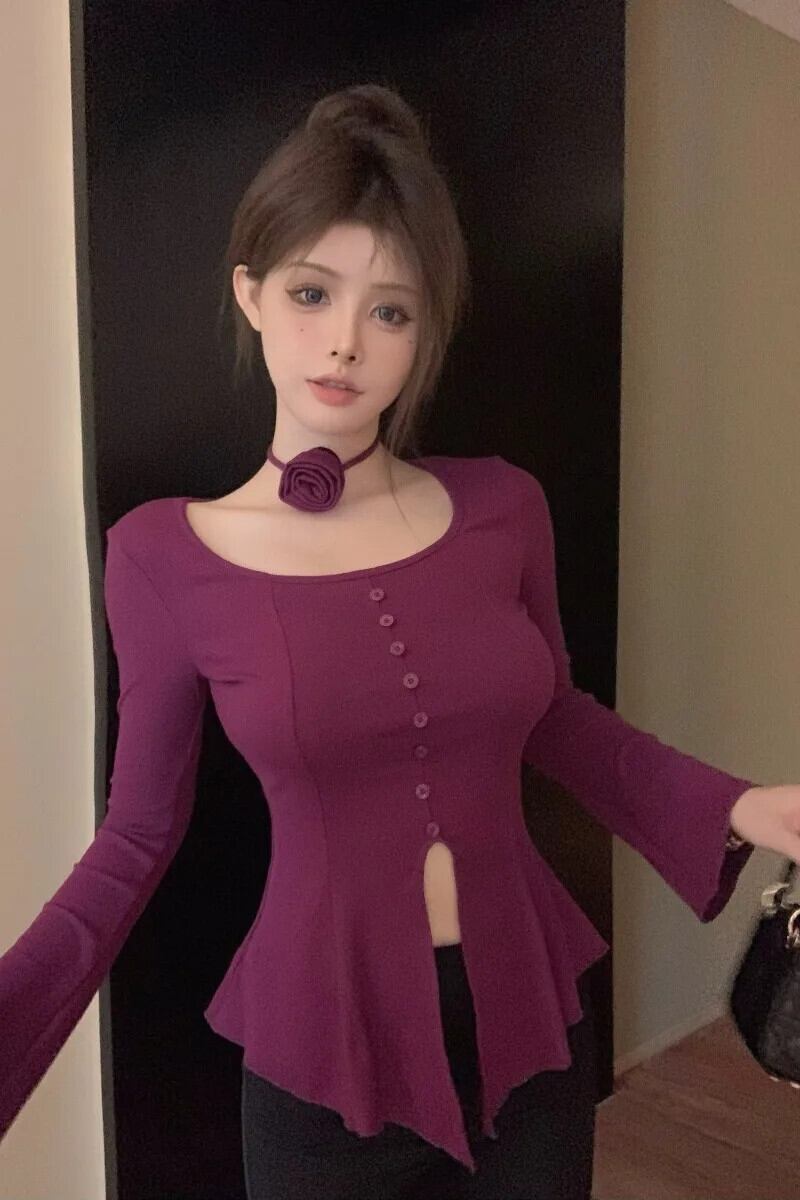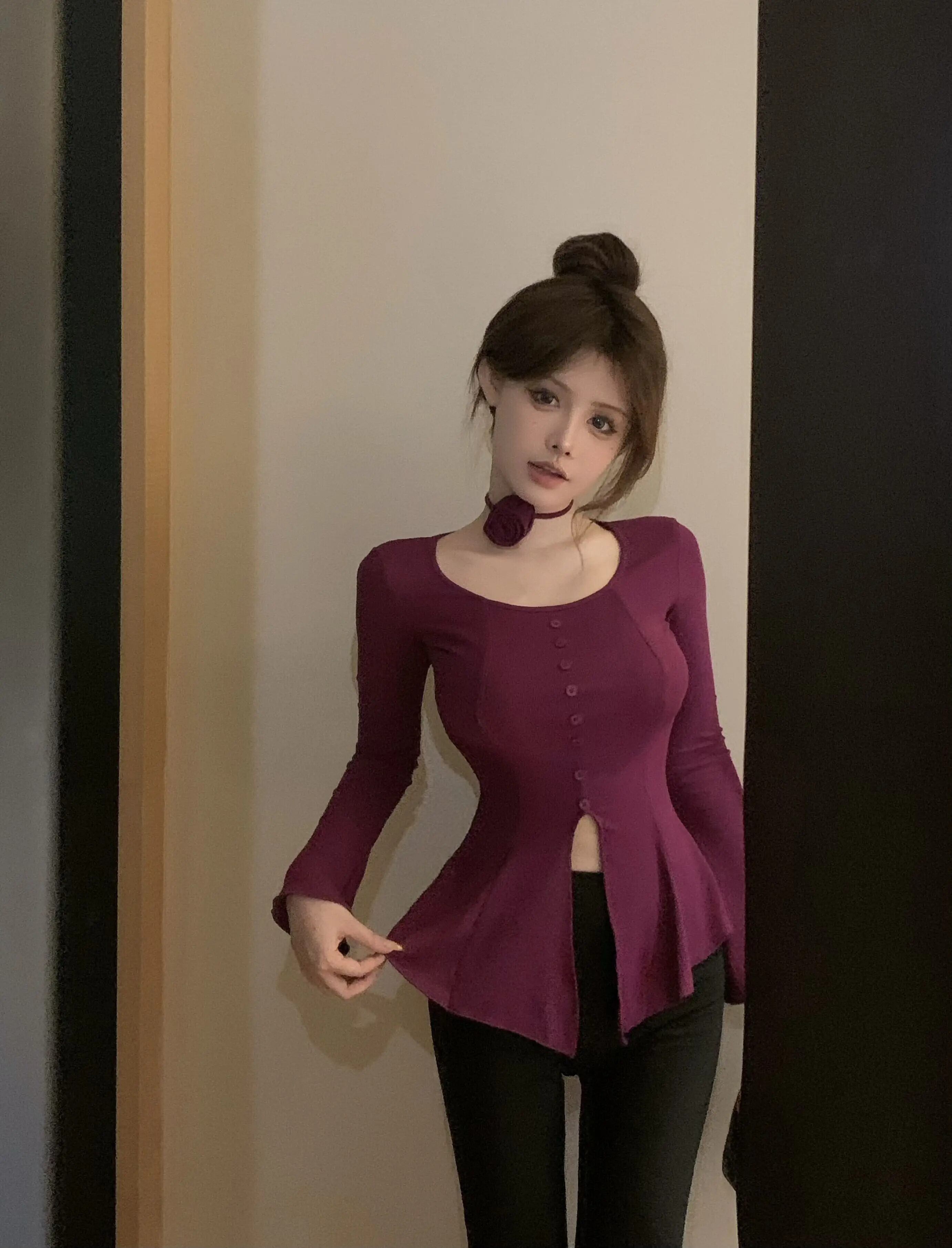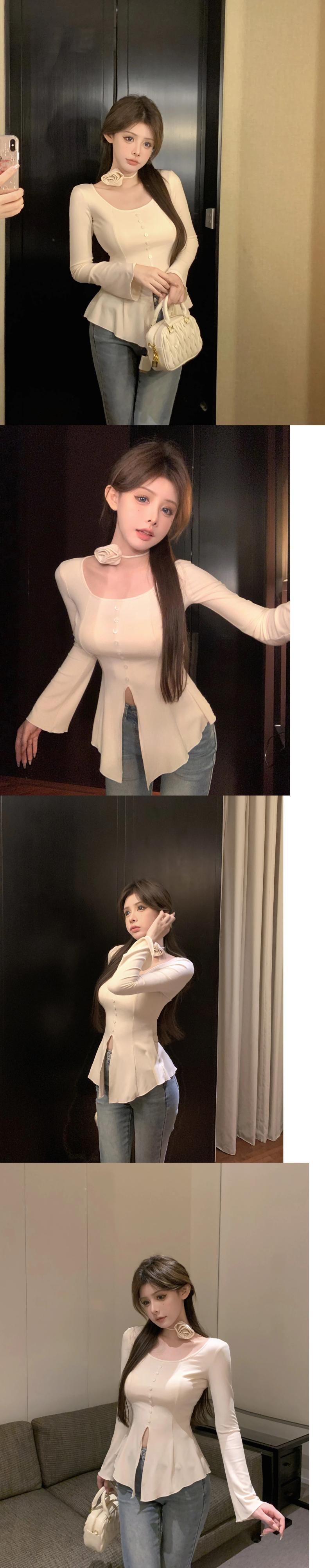 甘いホットガール U ネックレースアップフラワーニットプルオーバー秋スリムフィット湾曲したセーター 大人ガーリー スウィート キュート カジュアル オータム 秋物 フラワーデザイン