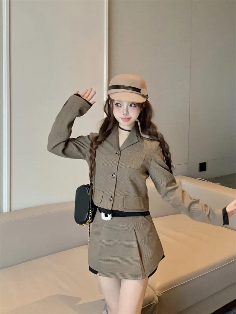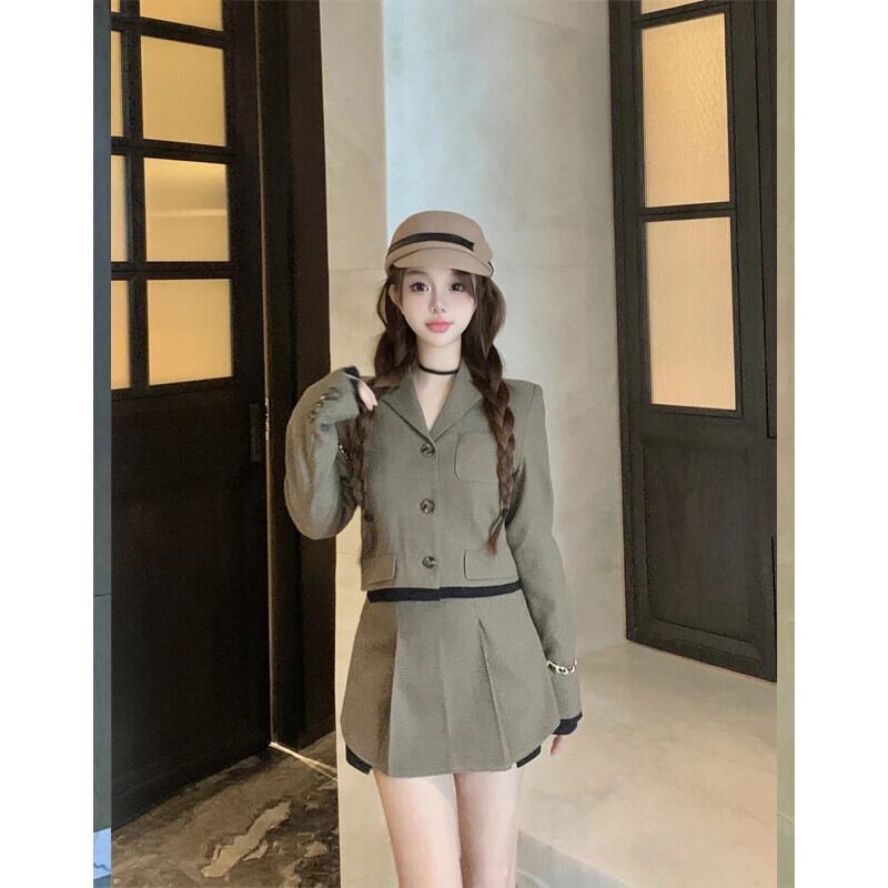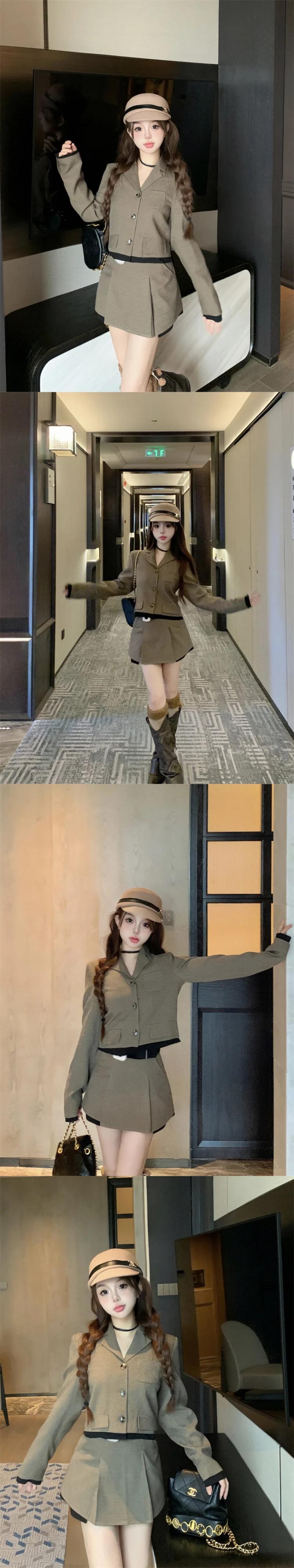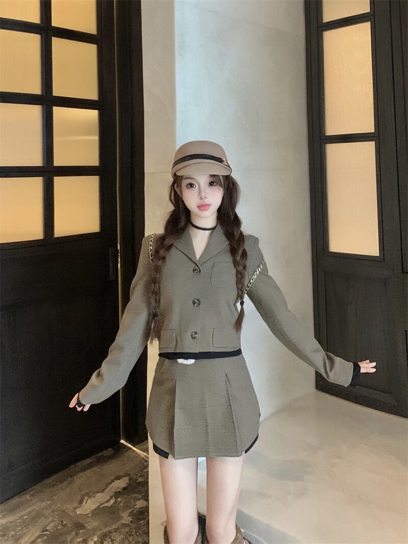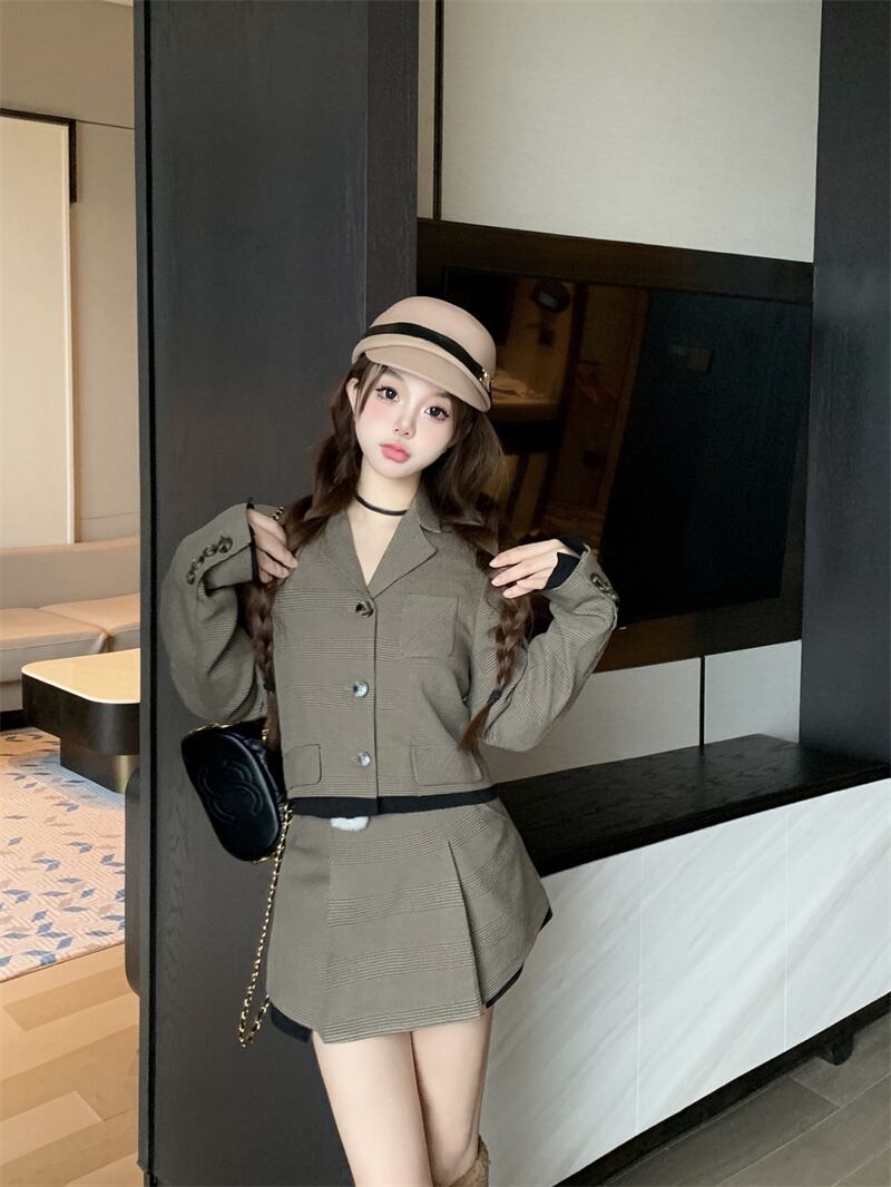 スタイルホットガールスーツ秋長袖ショートジャケット A ラインミニスカート 2 点セット ロング オータム 秋物 Aライン