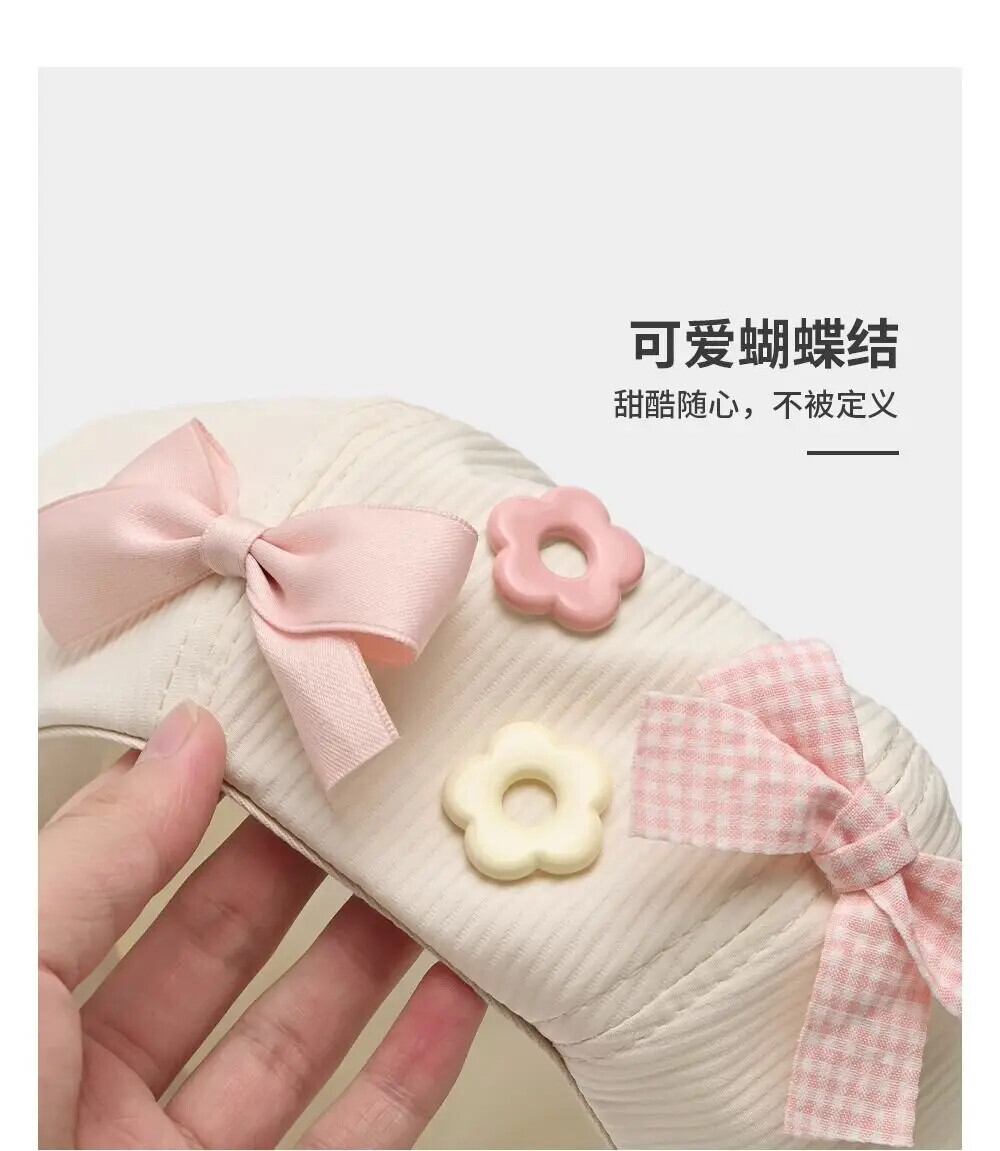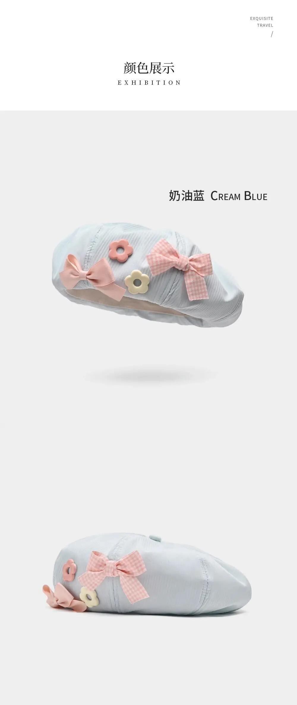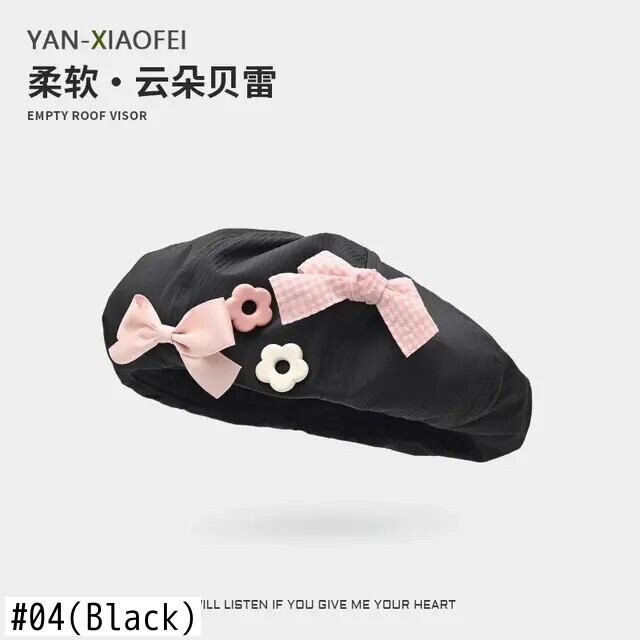 ese 甘いホットガールプレッピースタイルベレー帽夏かわいいクラウドボウフラワーボタンベレー帽トレンディアクセサリー リボン 大人ガーリー スウィート キュート カジュアル サマー 夏物 ベレット ヘアアクセサリー フラワーデザイン