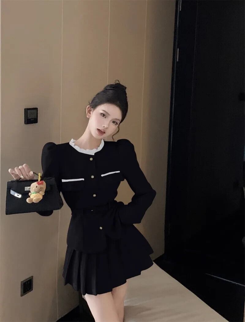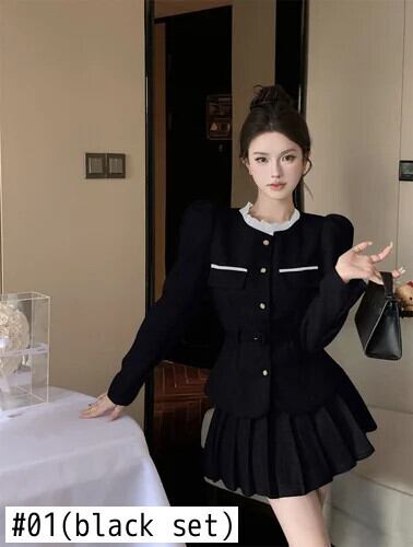 オフィスレディスーツ レディース 秋 長袖 ウエストラップトップ ウエスト Aライン プリーツスカート 2点セット ロング オータム 秋物 会社 学校 通勤や通学にも