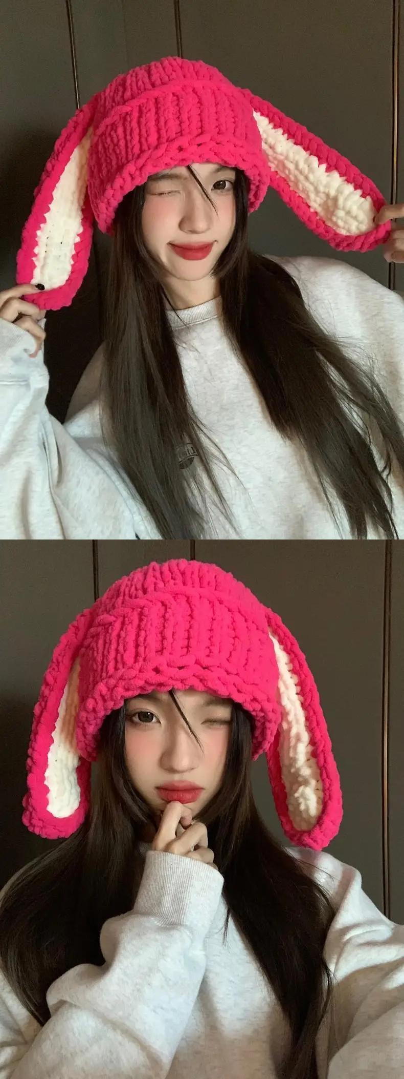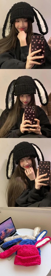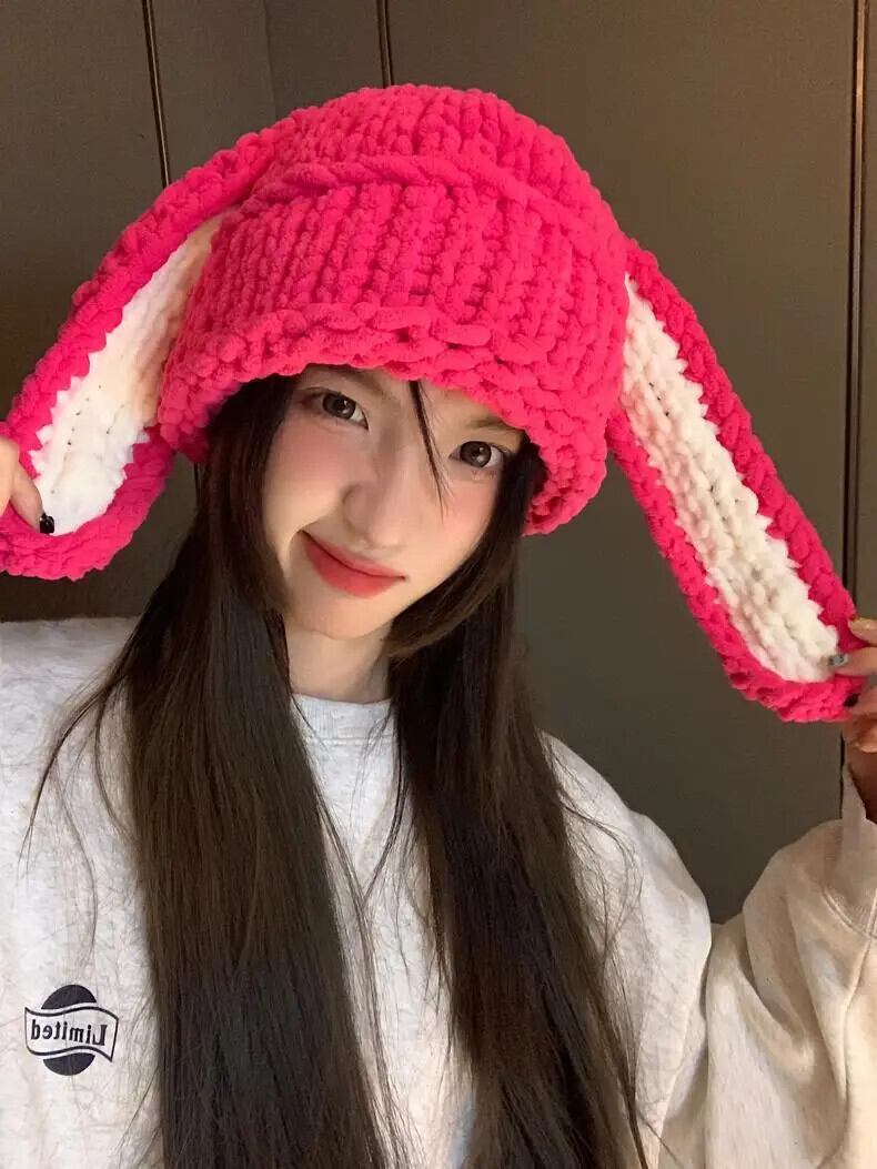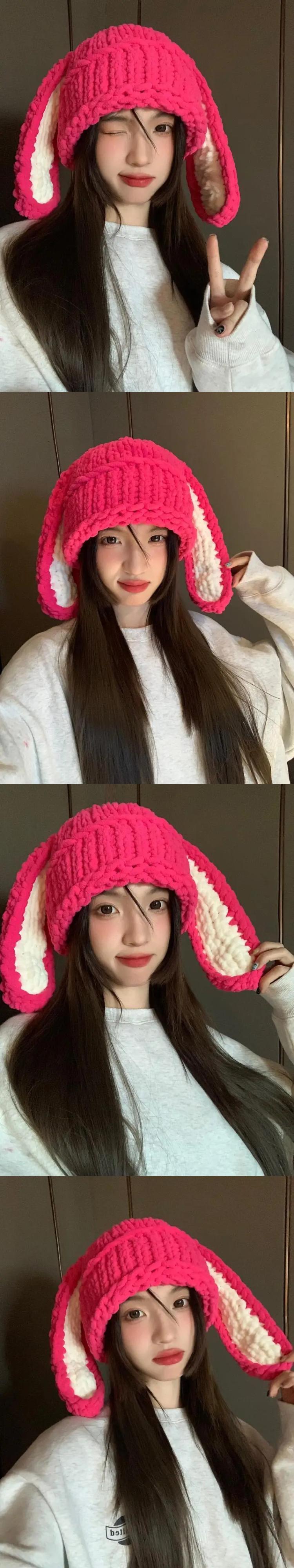 甘いホットガールかわいいロングウサギ耳ビーニー秋と冬編まれた暖かいニット帽子トレンディアクセサリー 大人ガーリー スウィート キュート カジュアル オータム 秋物 ウィンター 冬物