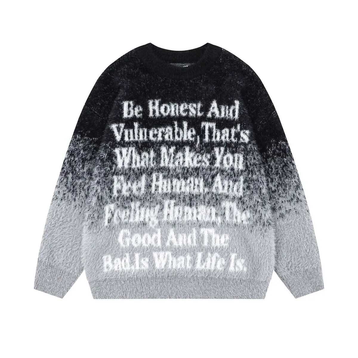 アメリカンレトロスタイルニットプルオーバー秋/冬メイラードスタイルグラデーションルーズOネックセーター オータム 秋物 ウィンター 冬物