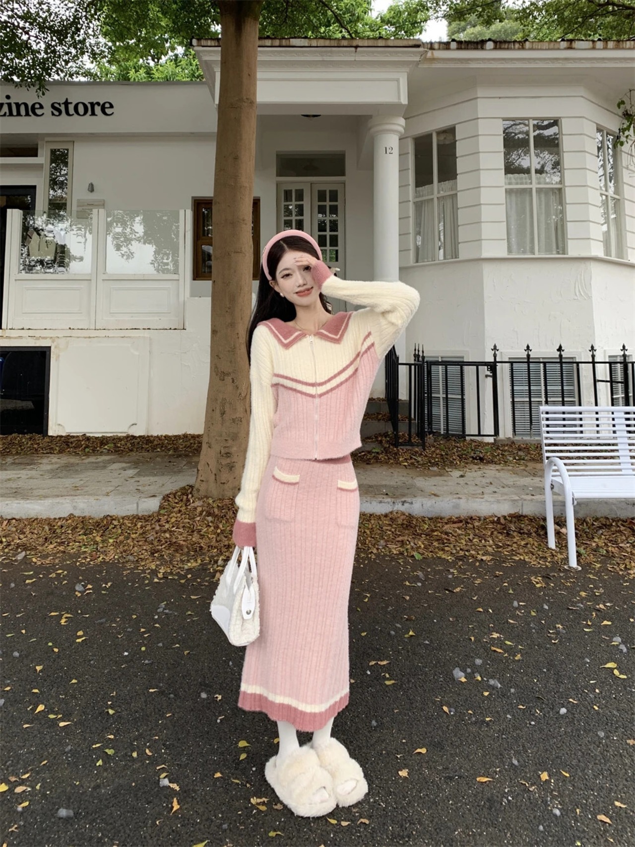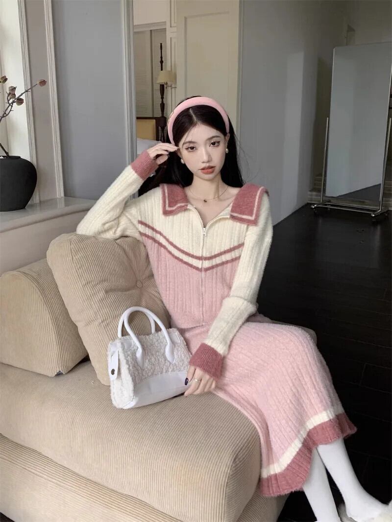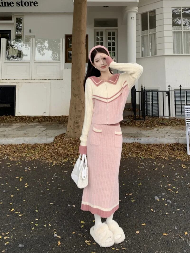 スイートガールスーツ レディース 秋と冬 モヘア ルーズ ショート セーター ニット ロングスカート 2点セット 大人ガーリー スウィート キュート カジュアル オータム 秋物 ウィンター 冬物