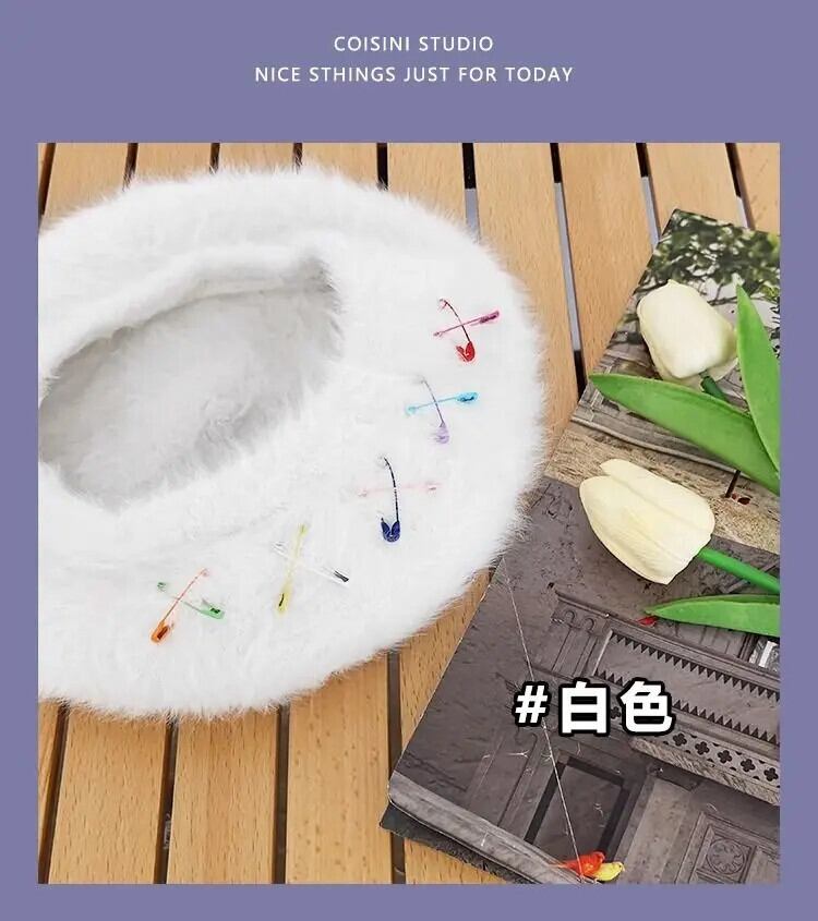甘い女子かわいい ese スタイルカラフルピンウサギ髪ベレー帽秋と冬暖かい豪華ベレー帽 & キャップ 帽子 大人ガーリー スウィート キュート カジュアル オータム 秋物 ウィンター 冬物 ベレット ヘアアクセサリー