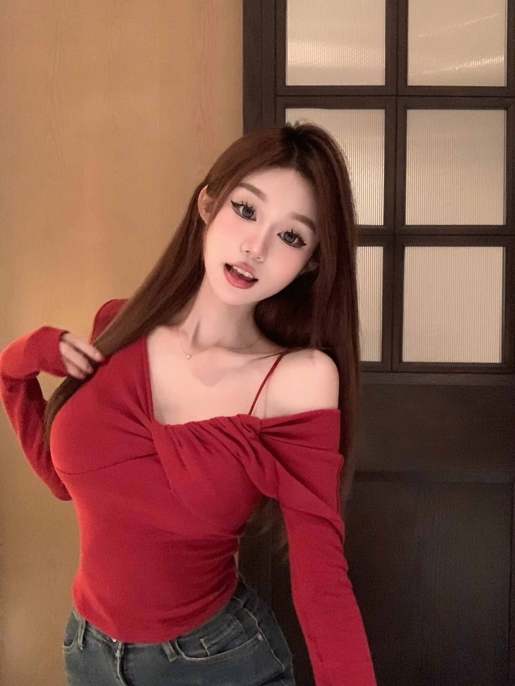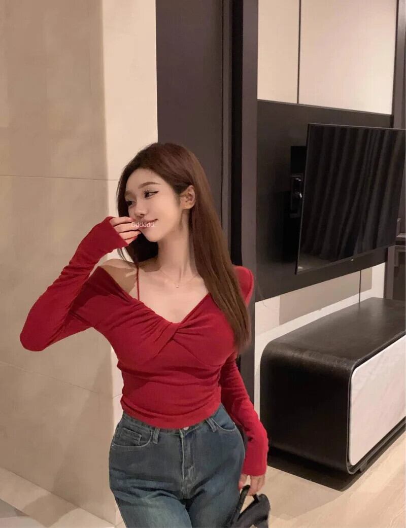 ホットガールリボン底無地セーター秋と冬長袖スリムニットプルオーバー ロング オータム 秋物 ウィンター 冬物 ソリッドカラー