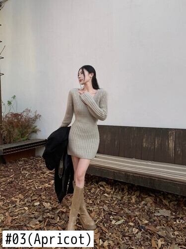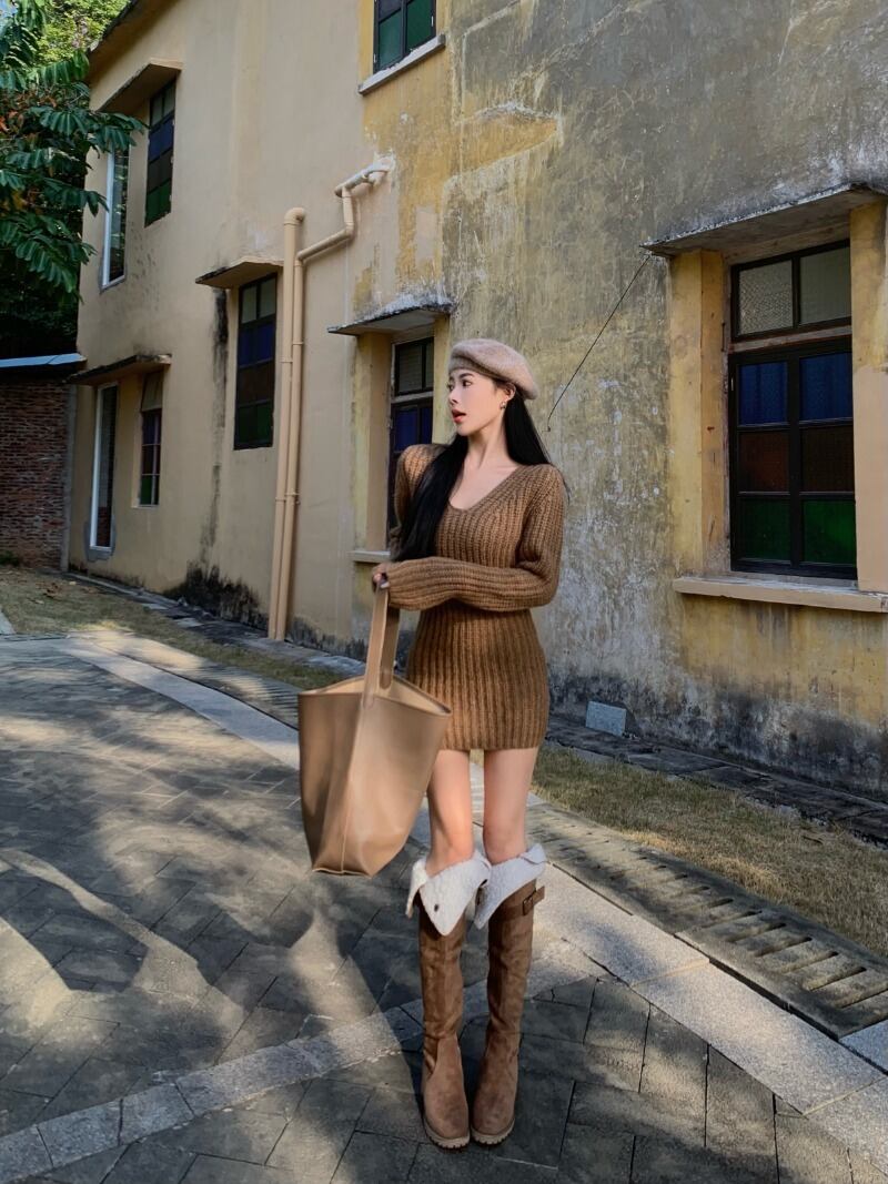 甘いホットガール V ネックスリムフィット太い針セーター秋/冬多用途長袖ドレス ロング 大人ガーリー スウィート キュート カジュアル オータム 秋物 ウィンター 冬物 Vネック