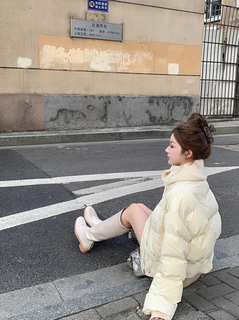 甘いホットガールラペルショートコットンジャケット冬長袖ルーズ肥厚ウエストコート ロング 大人ガーリー スウィート キュート カジュアル ウィンター 冬物