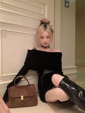 甘いホットガールオフショルダーベルベットドレス秋フィット長袖セクシー黒ショートドレス ロング ブラック 大人ガーリー スウィート キュート カジュアル オータム 秋物