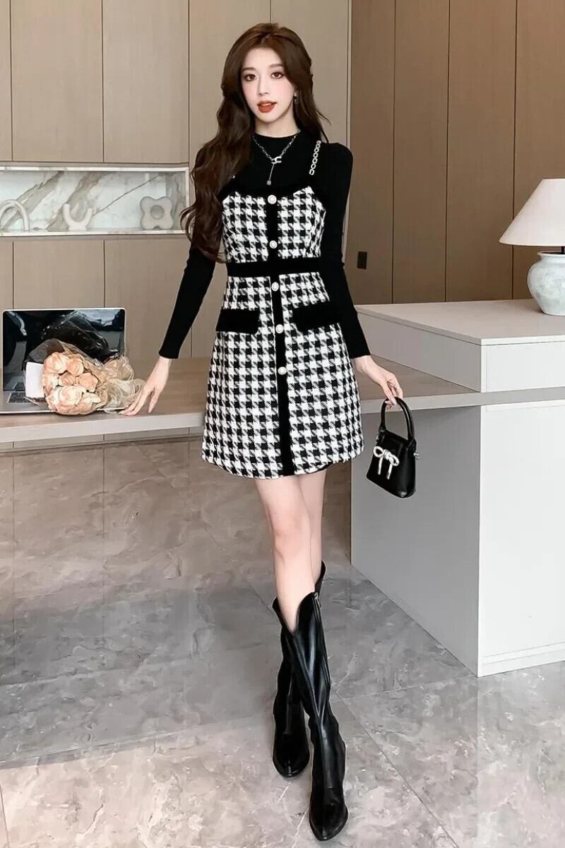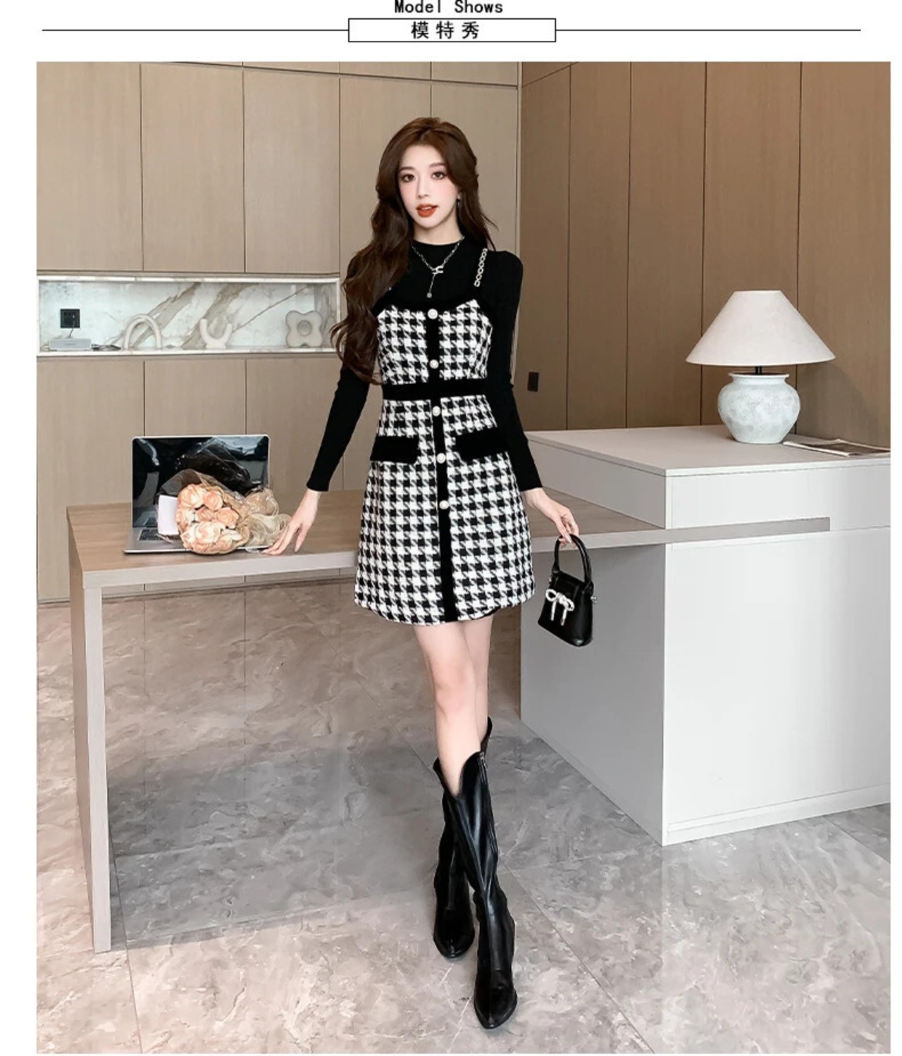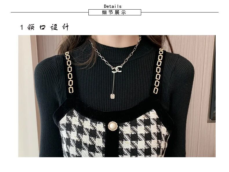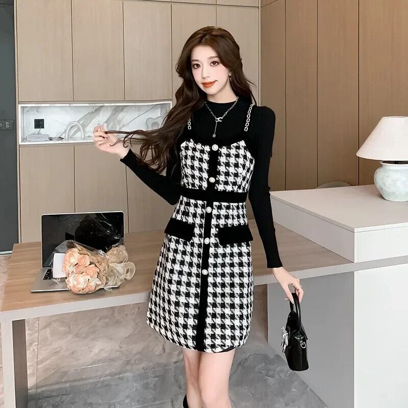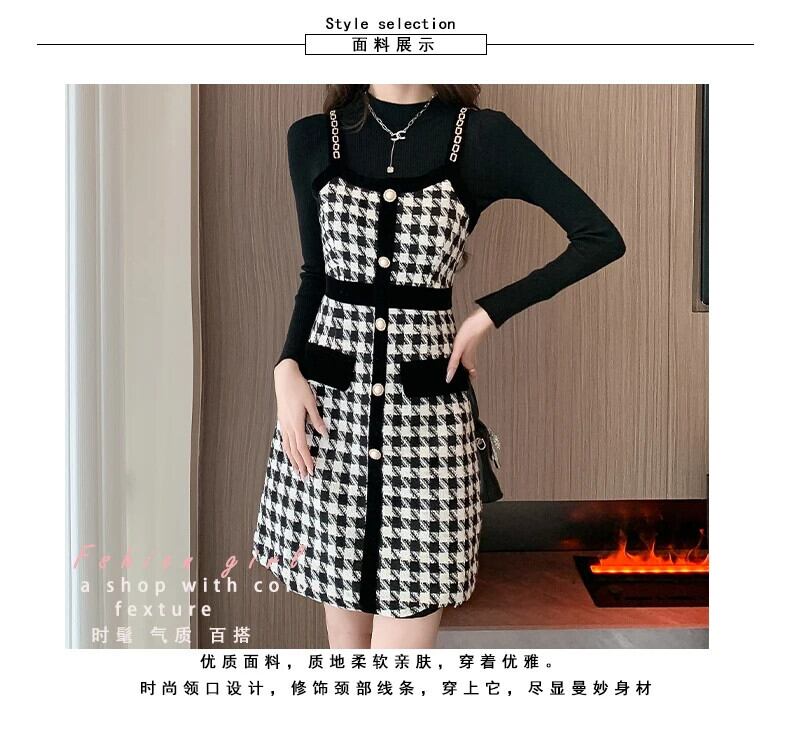 スイートガールスーツ秋/冬ベルベットパネルツバメガードスリムストラップドレスボトミングセーターツーピースセット 大人ガーリー スウィート キュート カジュアル オータム 秋物 ウィンター 冬物