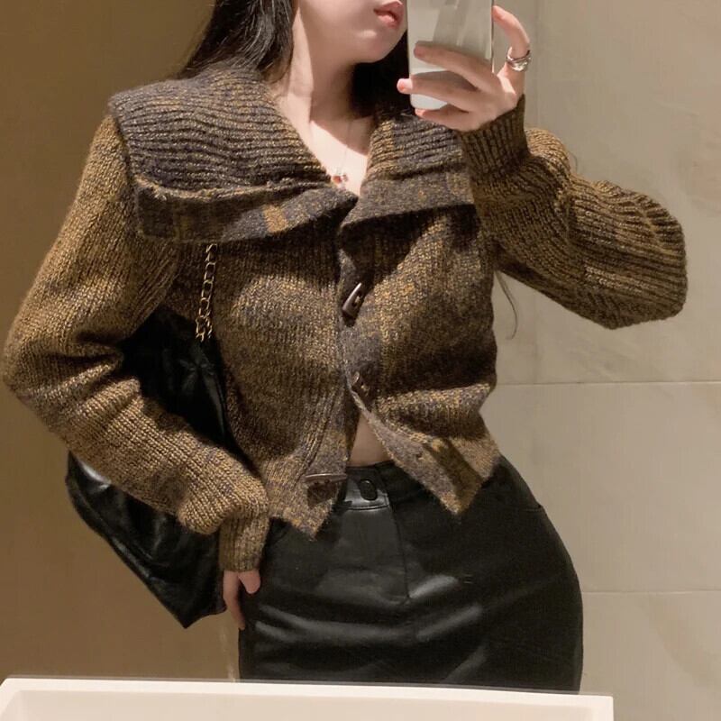 フレンチスイートホットガールルーズニットカーディガン秋と冬ラペルボタン厚いセーター 大人ガーリー スウィート キュート カジュアル オータム 秋物 ウィンター 冬物