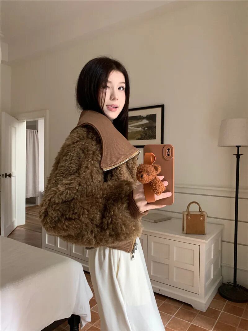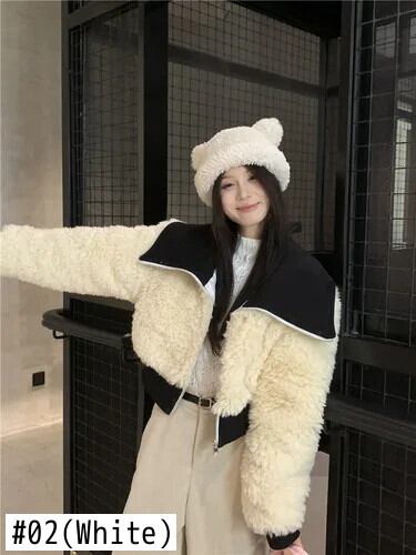 甘いホットガール大ラペルフェイクファー肥厚コットンジャケット秋ジッパー長袖スリムフィットショートジャケット ロング 大人ガーリー スウィート キュート カジュアル オータム 秋物