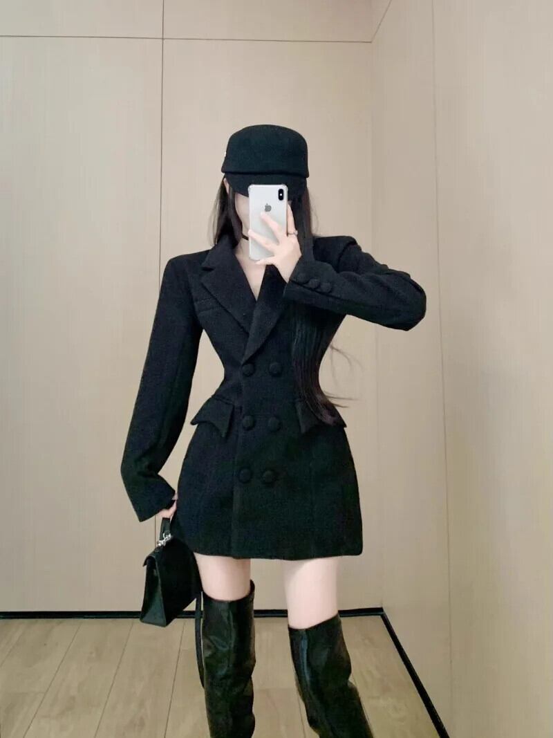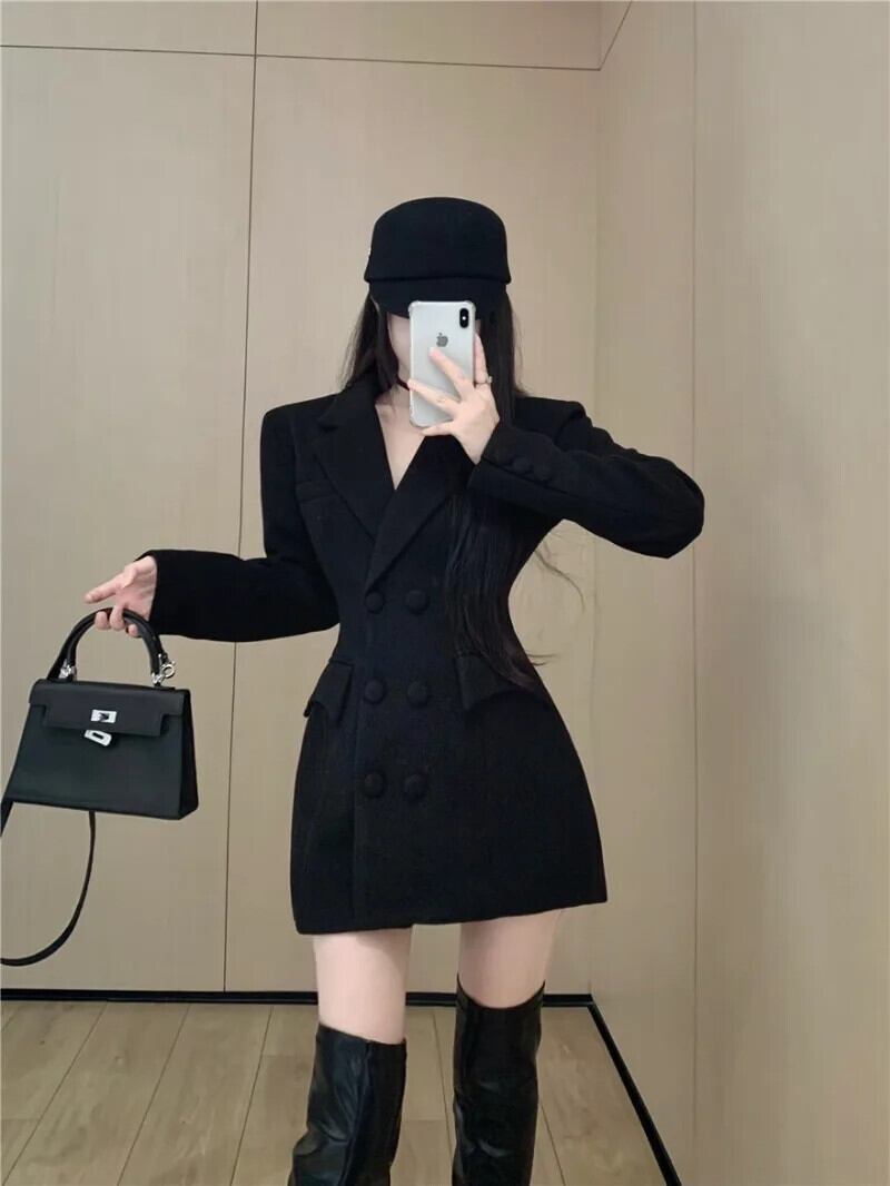 Sweet Girl コットンウールドレス レディース 秋/冬 ターンダウンカラー 長袖 ショートドレス ロング 大人ガーリー スウィート キュート カジュアル オータム 秋物 ウィンター 冬物