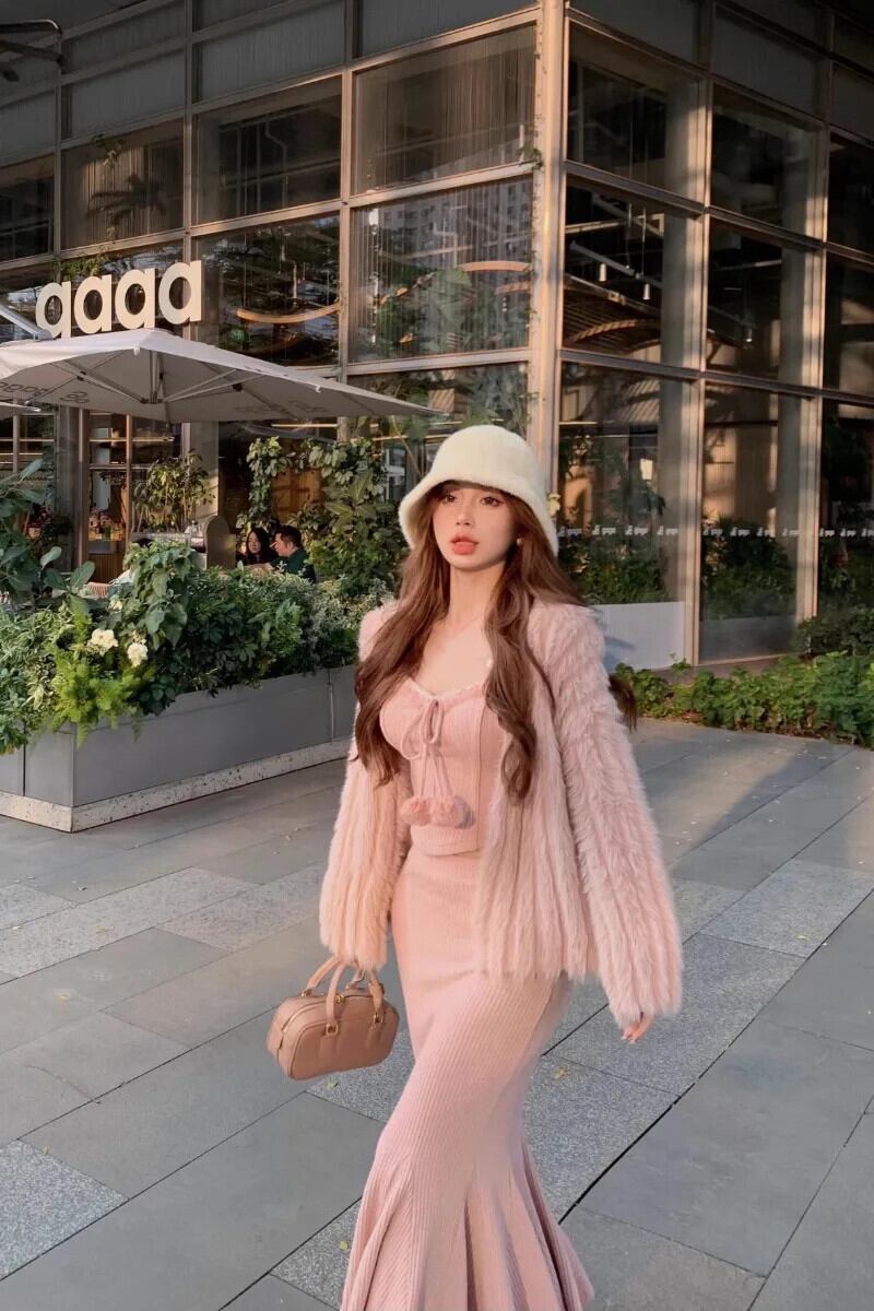 スウィートガールスーツ レディース 秋/冬 ニットカーディガン スリムフィット キャミソール マーメイドスカート 3点セット 大人ガーリー キュート カジュアル オータム 秋物 ウィンター 冬物