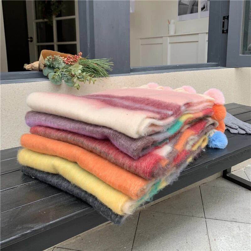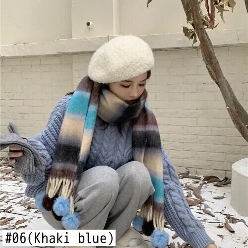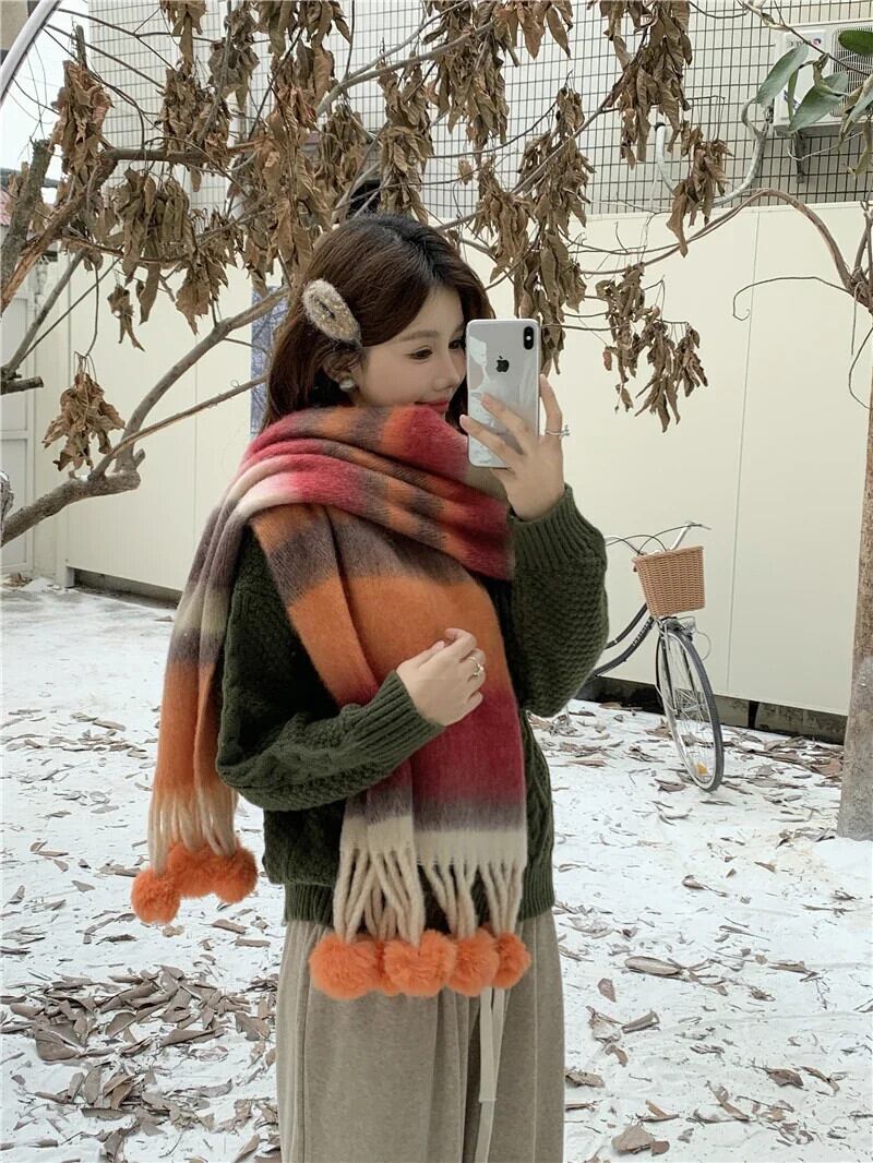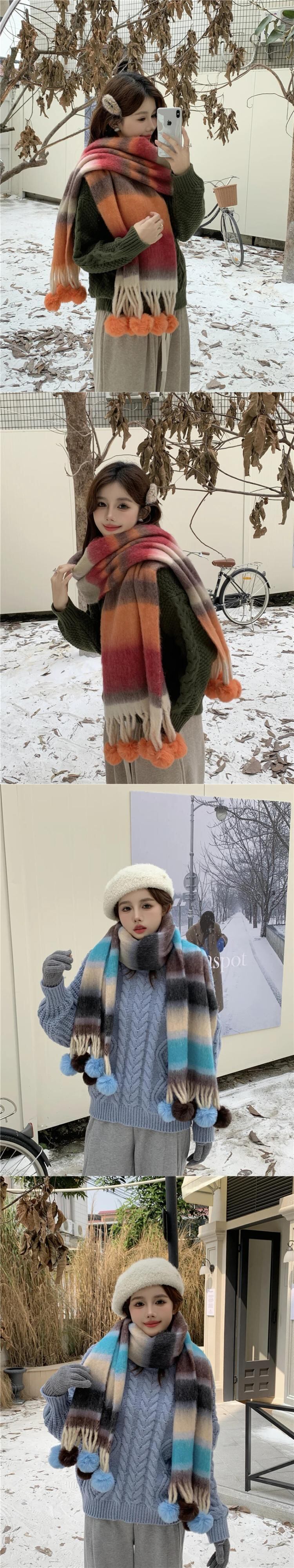 甘いホットガール色ストライプ電話スカーフ冬厚く暖かい毛皮ようボールスカーフトレンディアクセサリー レッド 大人ガーリー スウィート キュート カジュアル ウィンター 冬物