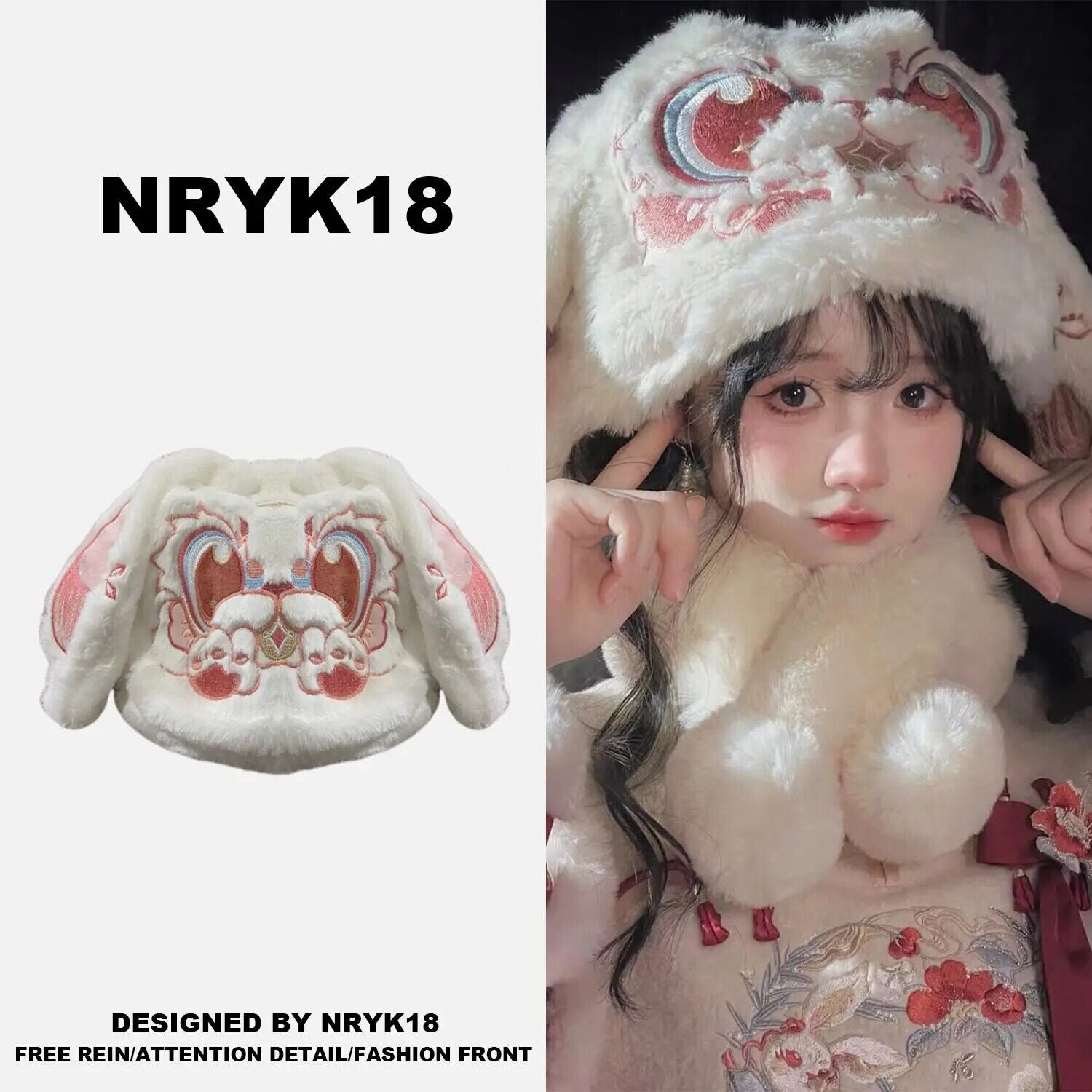 中国風ぬいぐるみウサギ耳ビーニー冬かわいい毛皮よう暖かいぬいぐるみと厚いフラットバケットハットトレンディアクセサリー 帽子 大人ガーリー スウィート キュート カジュアル ウィンター 冬物