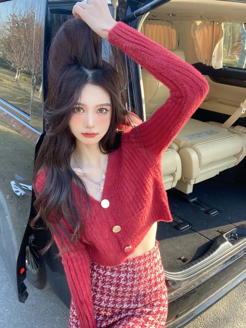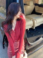 スイートガールスーツ秋 V ネックゴールドボタンカーディガンウエストスパンコールツバメガードスカート 2 点セット 大人ガーリー スウィート キュート カジュアル オータム 秋物 Vネック