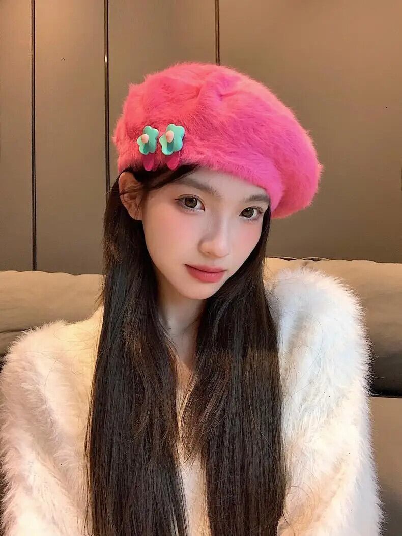 スイートガールヘアピンウサギヘアベレー帽秋と冬多用途暖かいぬいぐるみアーティスト帽子トレンディアクセサリー 大人ガーリー スウィート キュート カジュアル オータム 秋物 ウィンター 冬物 ベレット ヘアアクセサリー ソリッドカラー