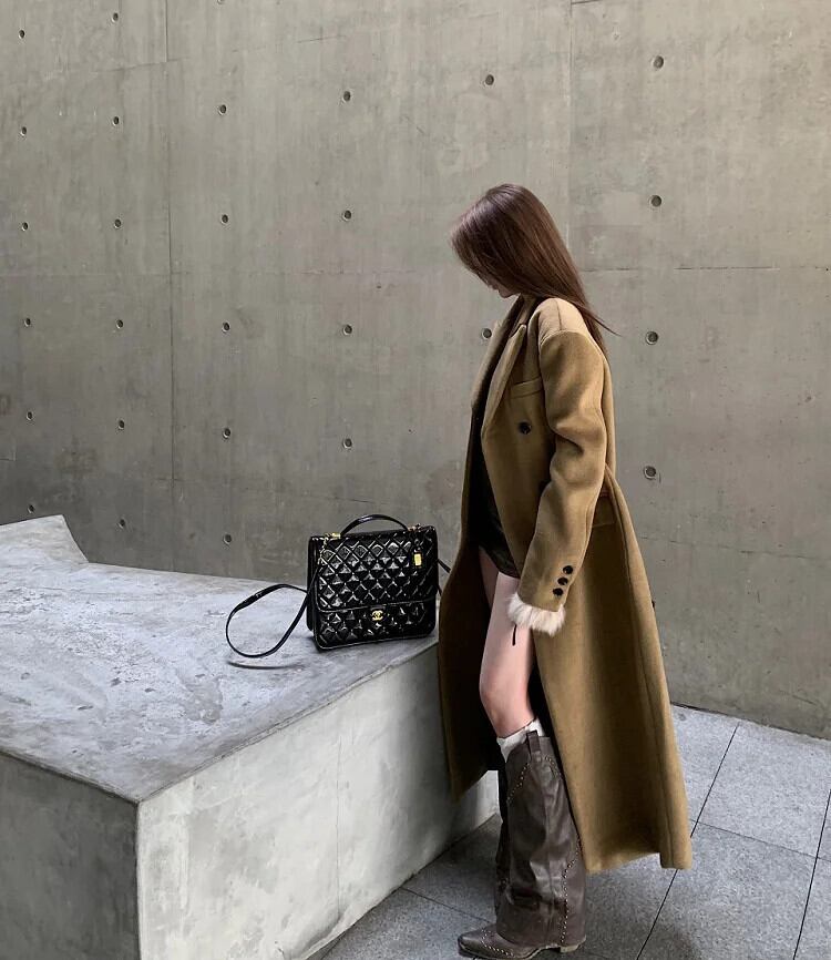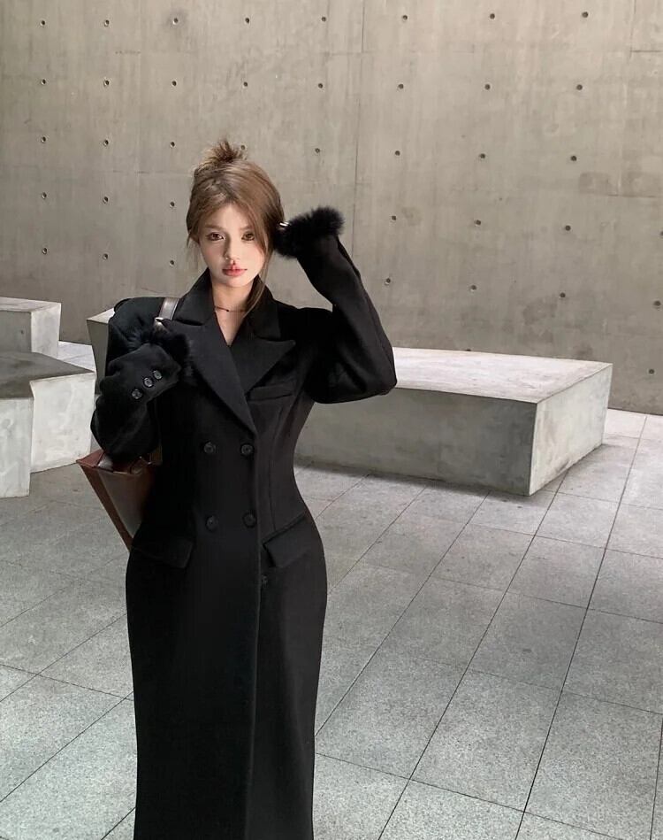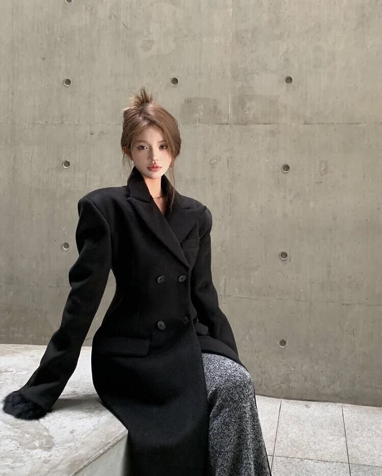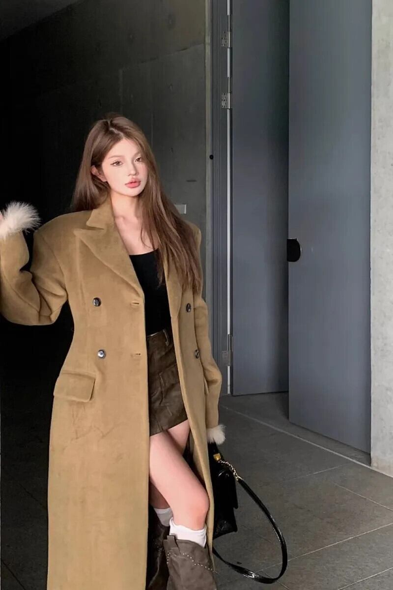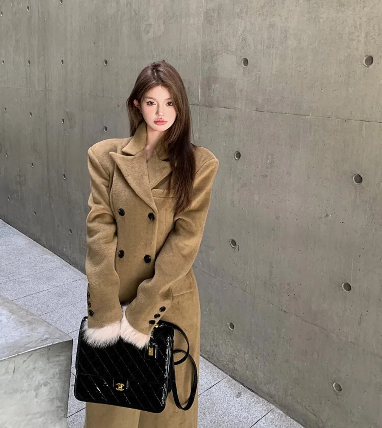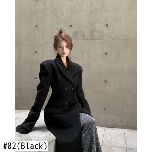 オフィスレディルースウールコート秋/冬スリムミッドレングス英国スタイルダブルブレストコート オータム 秋物 ウィンター 冬物 会社 学校 通勤や通学にも
