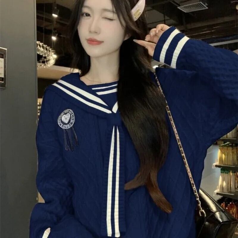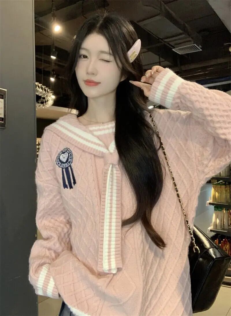 甘いホットガールスタイルセーター秋と冬セーラー襟優しいニットプルオーバートップ 大人ガーリー スウィート キュート カジュアル オータム 秋物 ウィンター 冬物