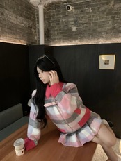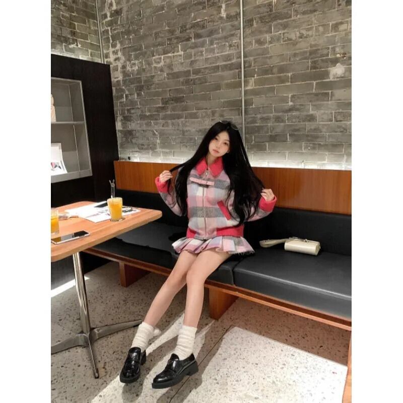 スイートガールスーツ秋/冬コントラストチェック柄コートウエストミニスカートショーツ 2 点セット 大人ガーリー スウィート キュート カジュアル オータム 秋物 ウィンター 冬物 ブルマー