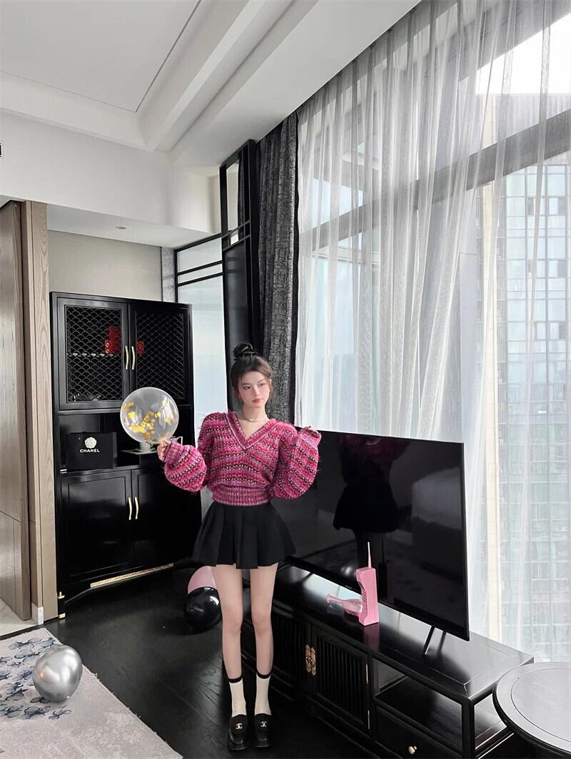 甘い女子怠惰スタイルレトロモヘアセーター秋バットスリーブ V ネックルーズショートセーター 大人ガーリー スウィート キュート カジュアル オータム 秋物 Vネック