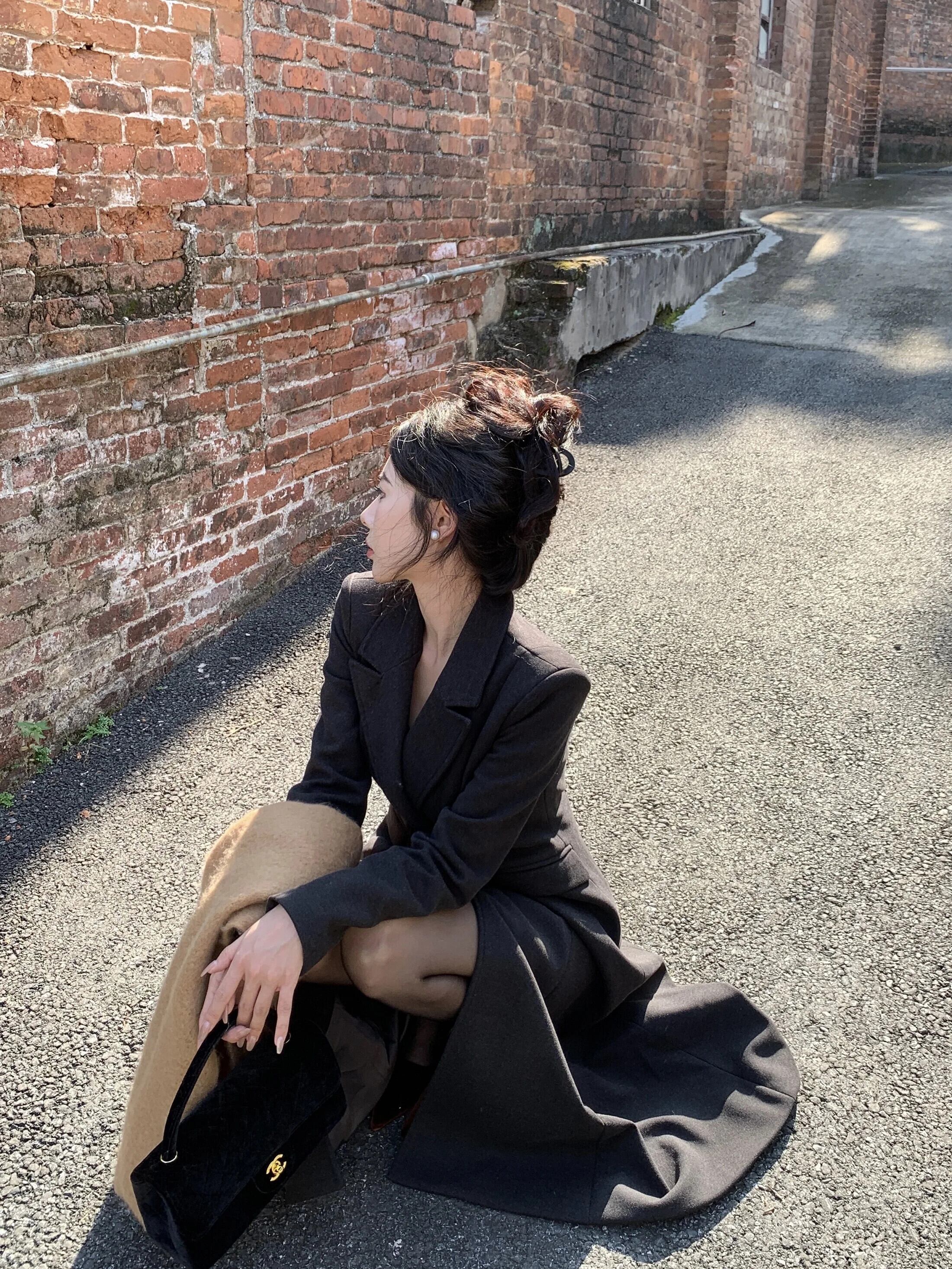 ホットガールウールスーツジャケット秋/冬ミッドレングス肥厚長袖スリムフィットコート ロング オータム 秋物 ウィンター 冬物