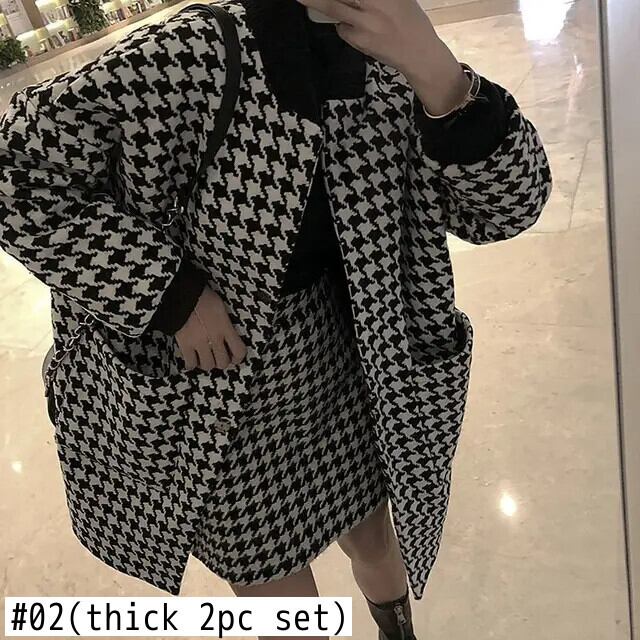スイートガールスーツ秋肥厚黒と白ツバメガードコートウエストミニスカートツーピースセット ホワイト ブラック 大人ガーリー スウィート キュート カジュアル オータム 秋物