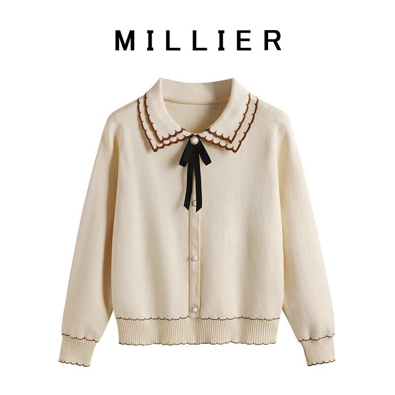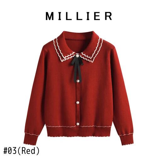 フレンチスタイル甘いホットガールボウタイセーター秋/冬ピーターパン襟ルーズニットプルオーバー リボン 大人ガーリー スウィート キュート カジュアル オータム 秋物 ウィンター 冬物