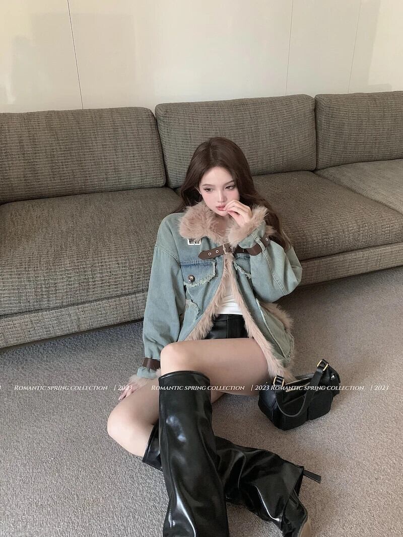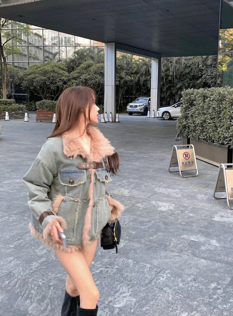 Sweet Girl 厚く暖かいデニムジャケット冬ターンダウン襟ぬいぐるみコットンジャケット 大人ガーリー スウィート キュート カジュアル ウィンター 冬物