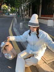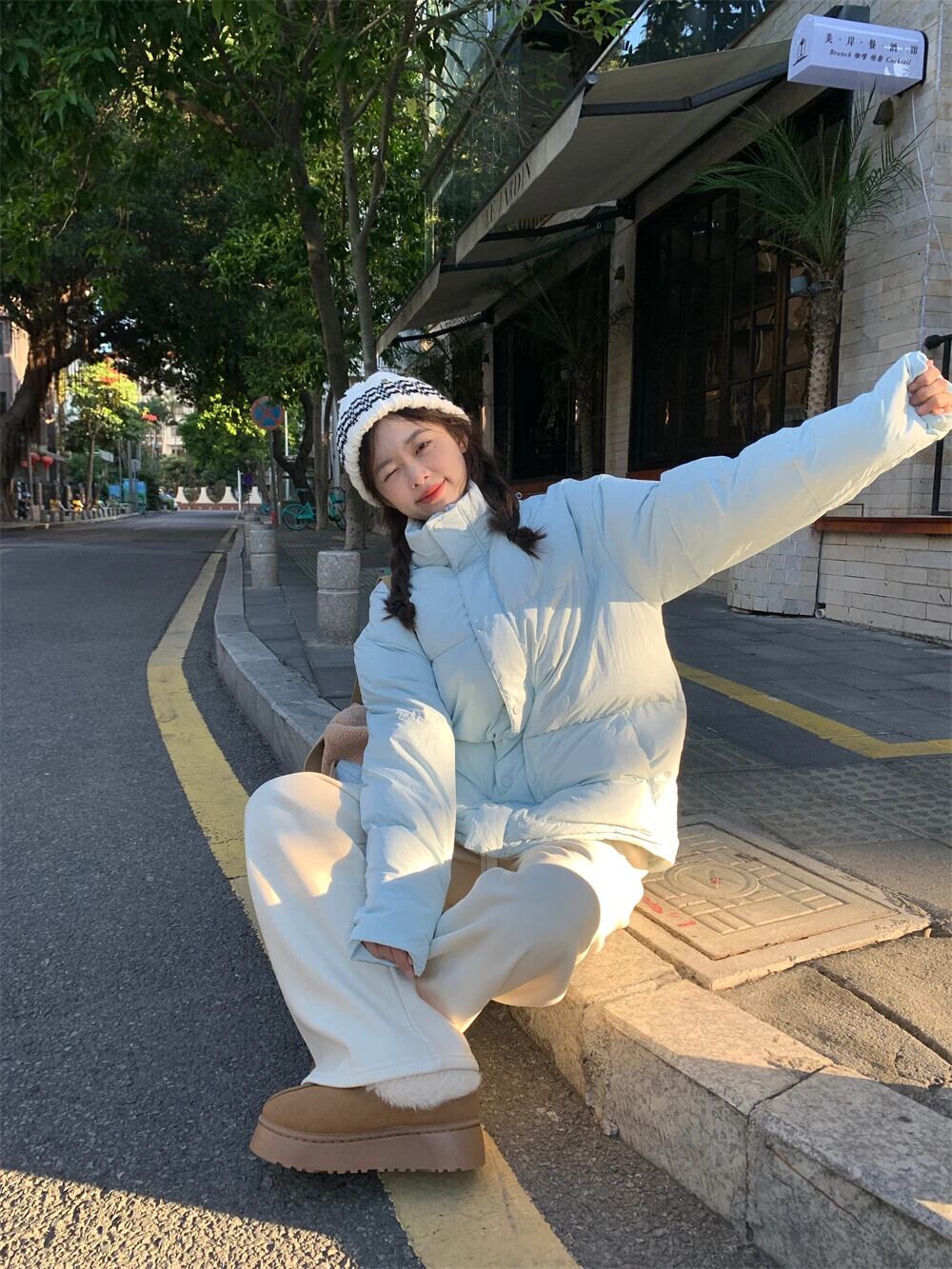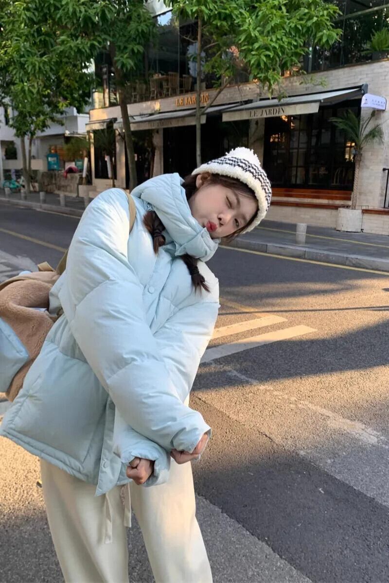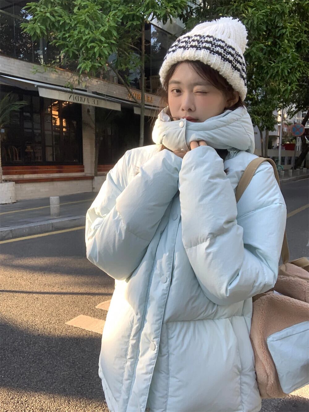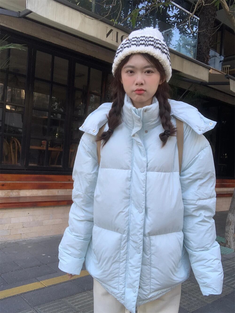 Sweet Girl 肥厚フード付きコットンジャケット冬ミッドレングスルーズスタンドカラーコットンジャケット 大人ガーリー スウィート キュート カジュアル ウィンター 冬物