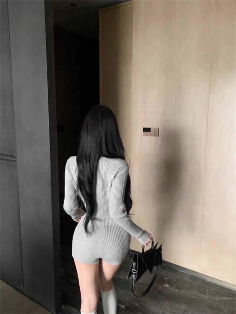 甘いホットガールスーツ秋/冬 V ネックシングルブレストニットトップウエストショーツ 2 点セット 大人ガーリー スウィート キュート カジュアル オータム 秋物 ウィンター 冬物 ブルマー Vネック