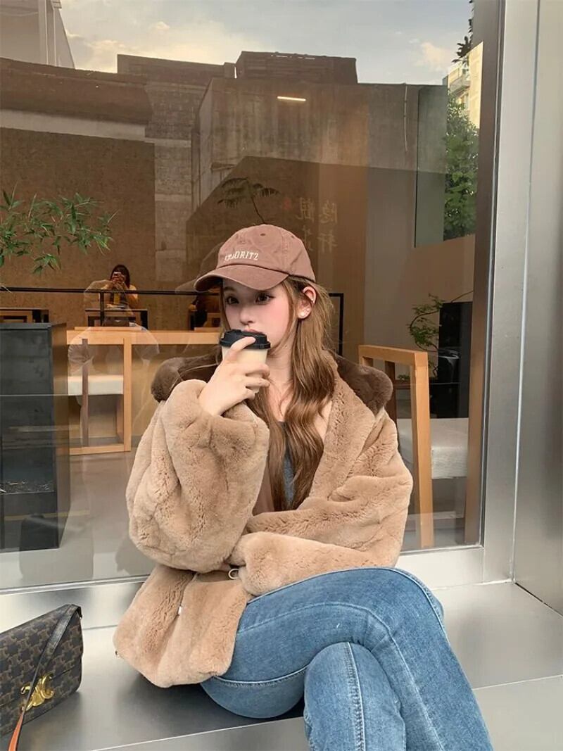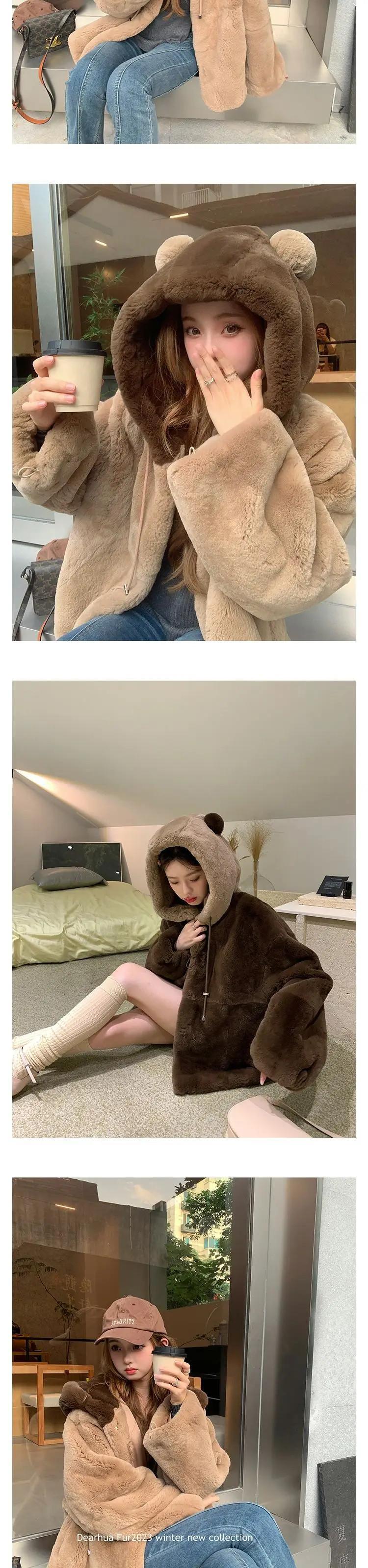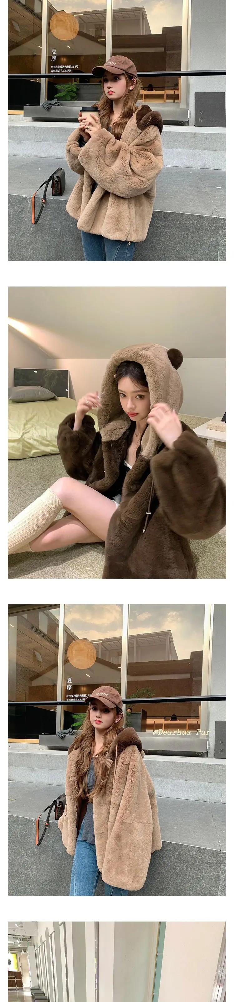 甘いホットガールかわいいクマ耳フェイクファーコート秋/冬フード付きルース肥厚毛皮ようジャケット 大人ガーリー スウィート キュート カジュアル オータム 秋物 ウィンター 冬物