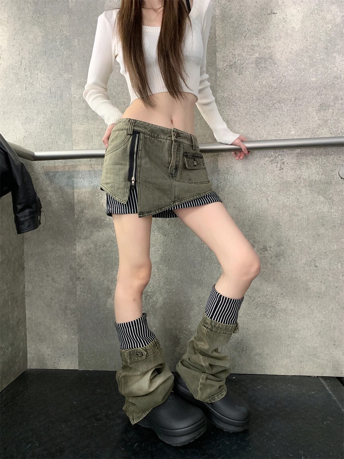 甘くてクールホットガールジッパーデニムミニスカート秋/冬ローウエストレッグカバースカートパンツ 大人ガーリー スウィート キュート カジュアル オータム 秋物 ウィンター 冬物