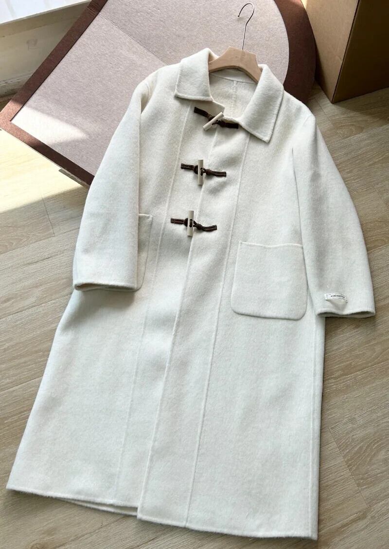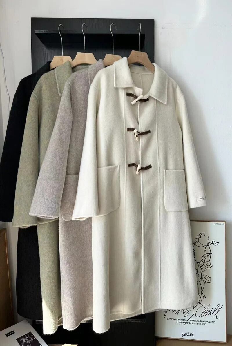 甘いホットガール両面カシミヤコート秋/冬膝丈ホーンボタンルーズウールコート 大人ガーリー スウィート キュート カジュアル オータム 秋物 ウィンター 冬物
