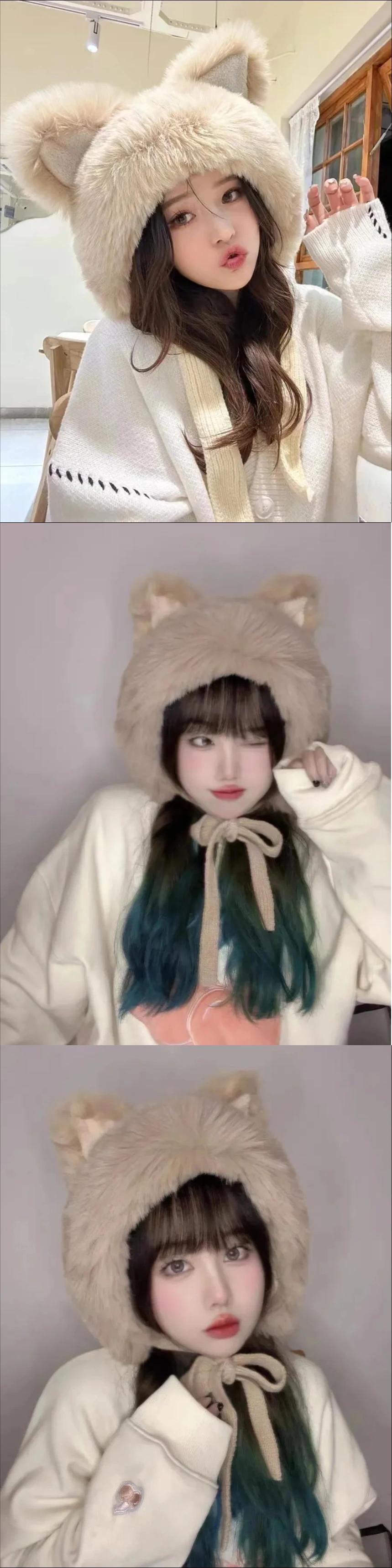 ese Sweet Girl かわいいキツネ耳毛皮ようレースアップ ボンバー帽子 レディース 秋/冬 ニット ボンバー帽子 帽子 & キャップ 大人ガーリー スウィート キュート カジュアル オータム 秋物 ウィンター 冬物