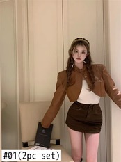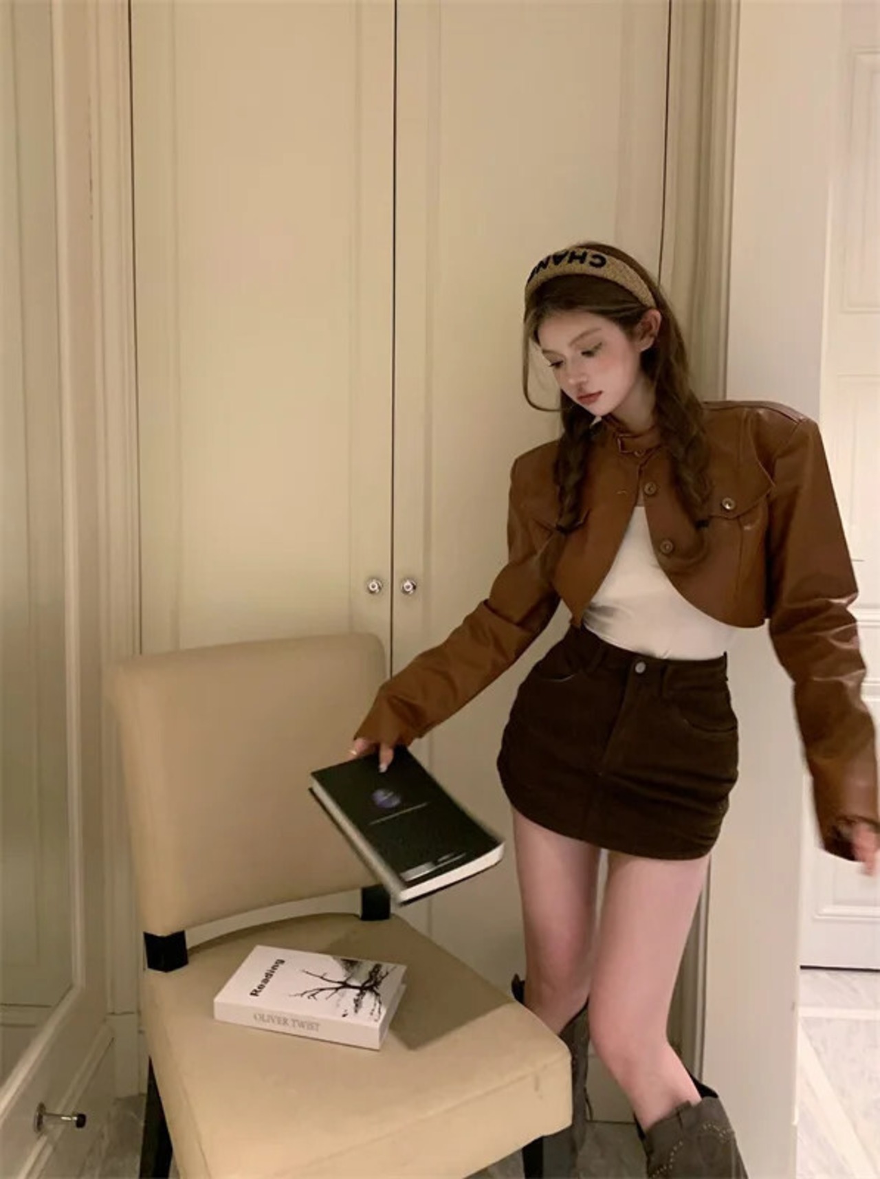 アメリカンホットガールズスーツ秋長袖オートバイコート弾性ラップヒップスカートツーピースセット ロング エラスティック 伸縮 オータム 秋物
