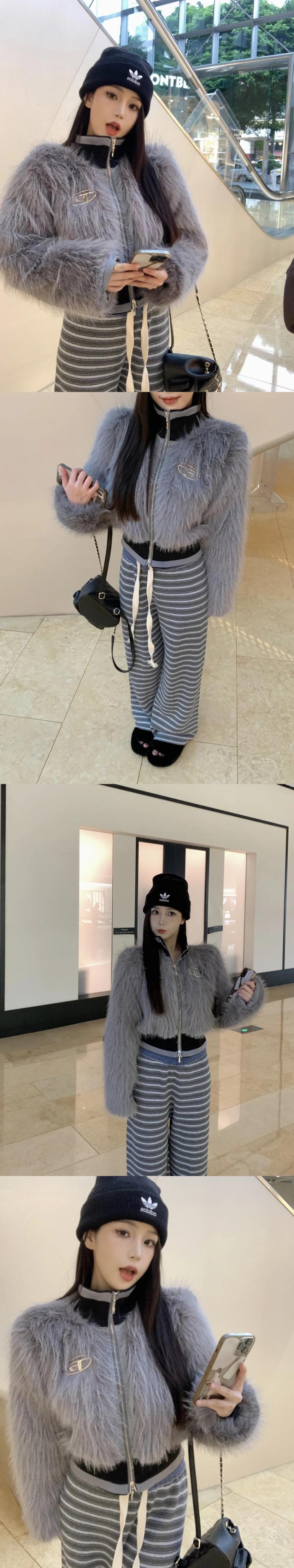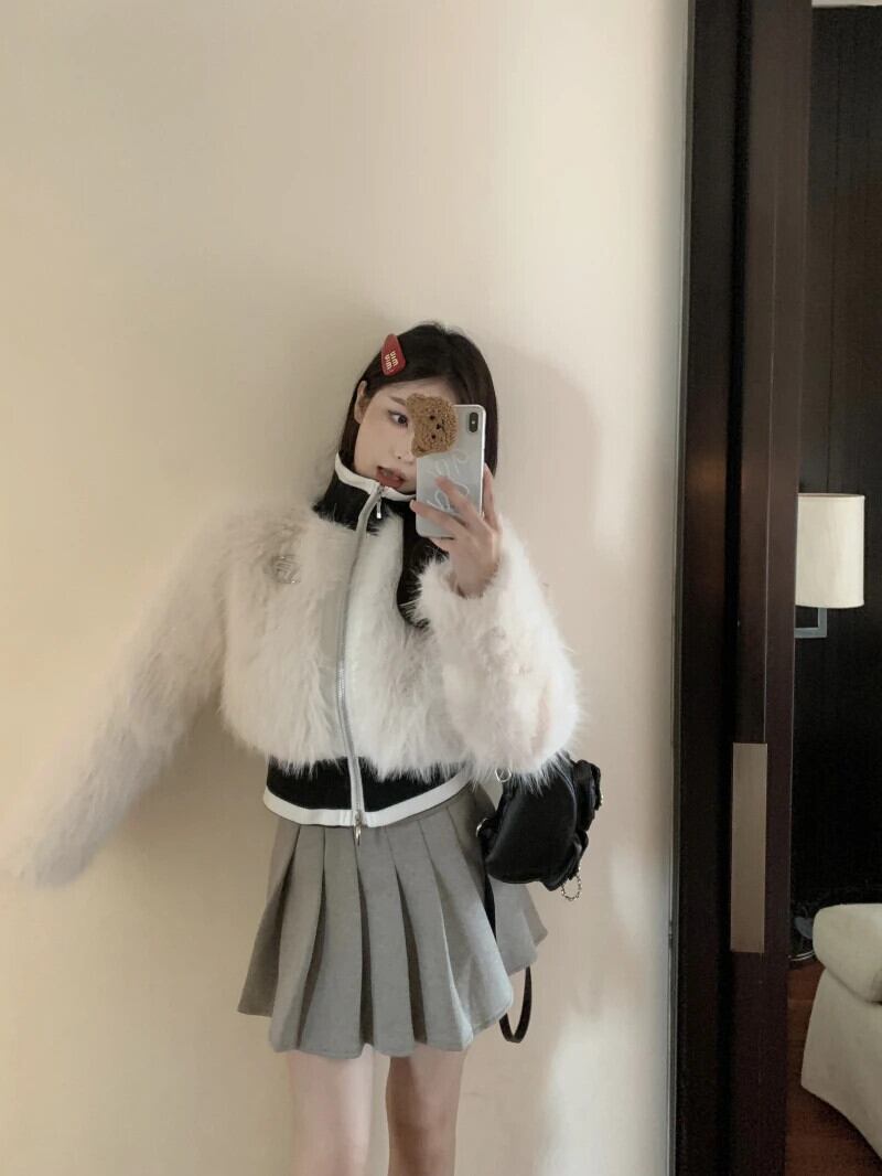 Sweer ホットガールぬいぐるみフェイクファーコート秋/冬長袖スプライシングスタンドカラーショートジャケット ロング オータム 秋物 ウィンター 冬物