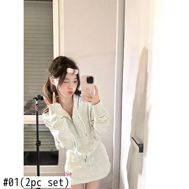 スイートホットガールスーツ秋フード付き長袖ショートコートラップヒップミニスカートツーピースセット ロング 大人ガーリー スウィート キュート カジュアル オータム 秋物
