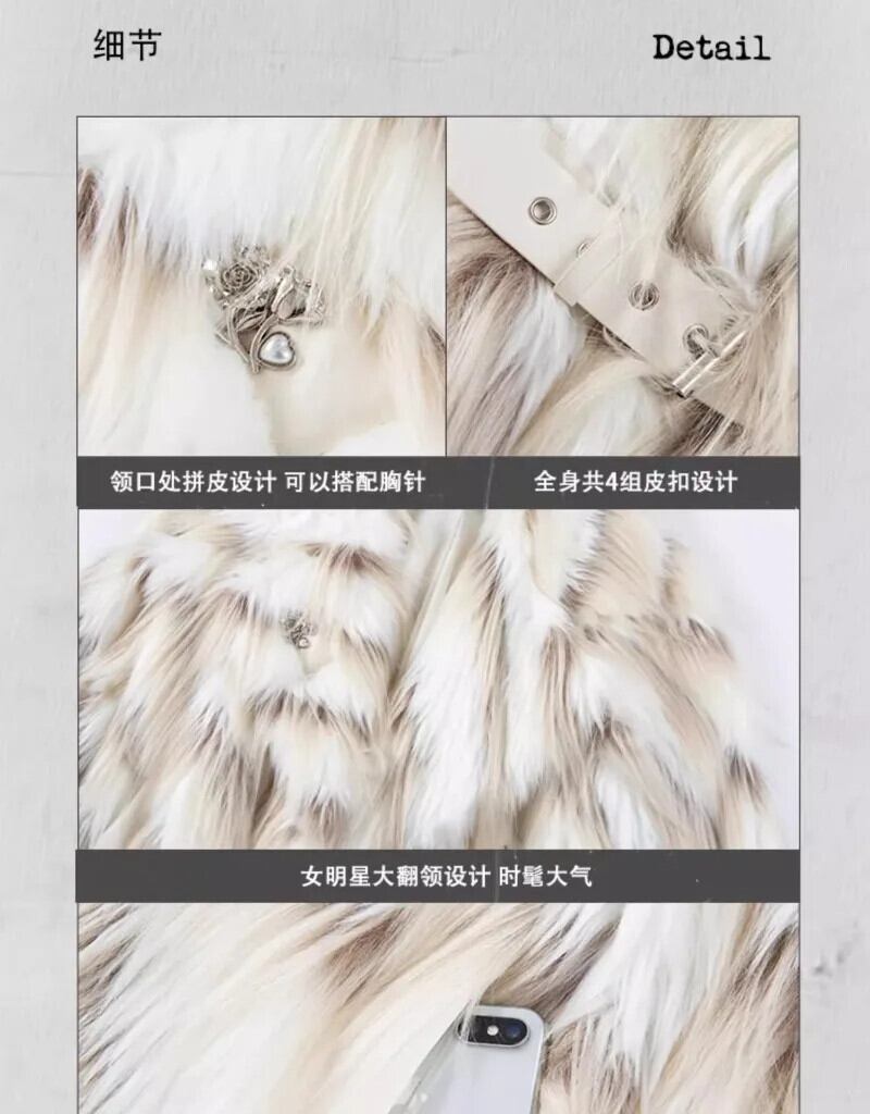 ホットガールレトロ混合色肥厚フェイクファーコート秋/冬長袖ミッドレングスジャケット ロング オータム 秋物 ウィンター 冬物