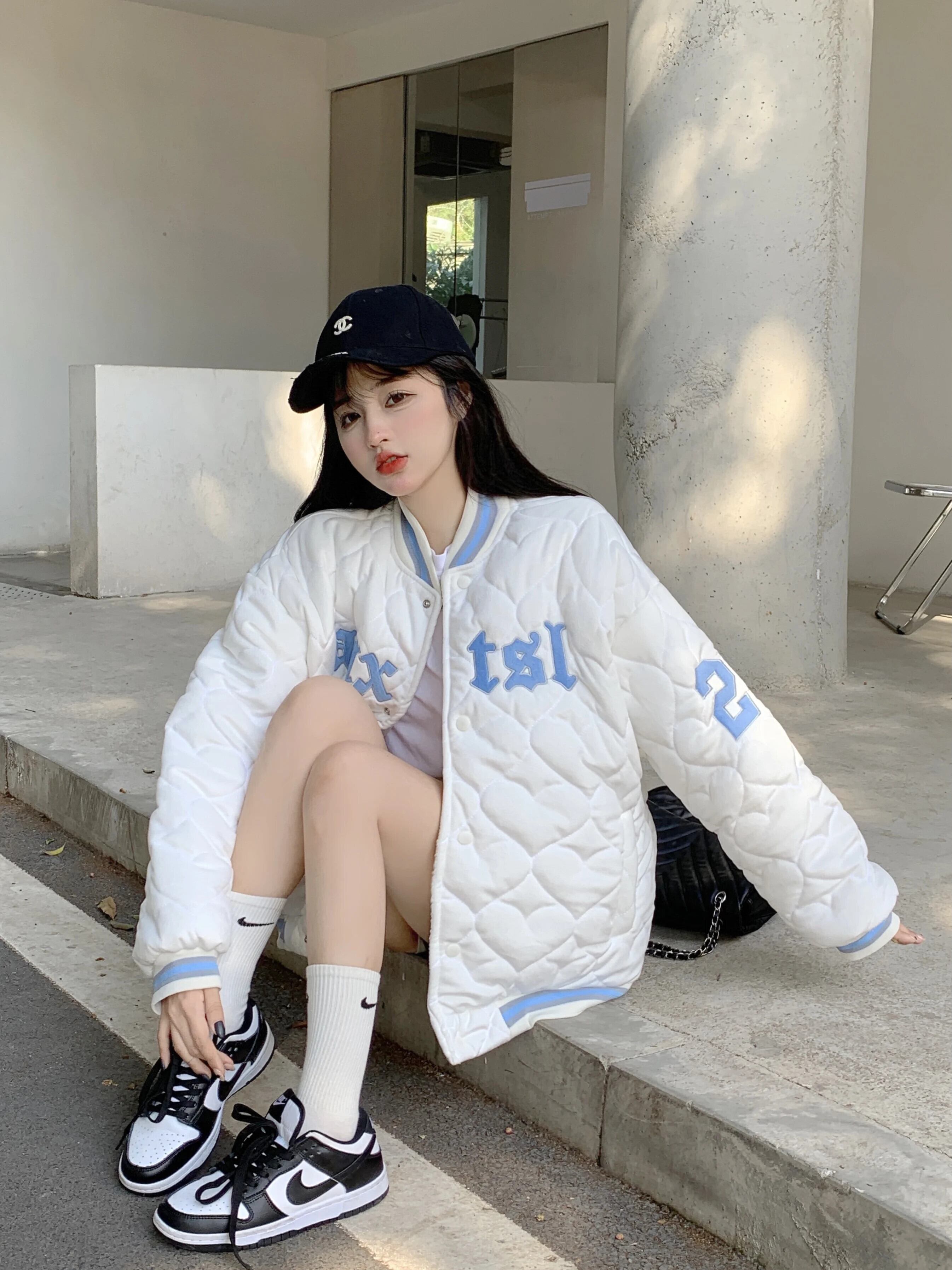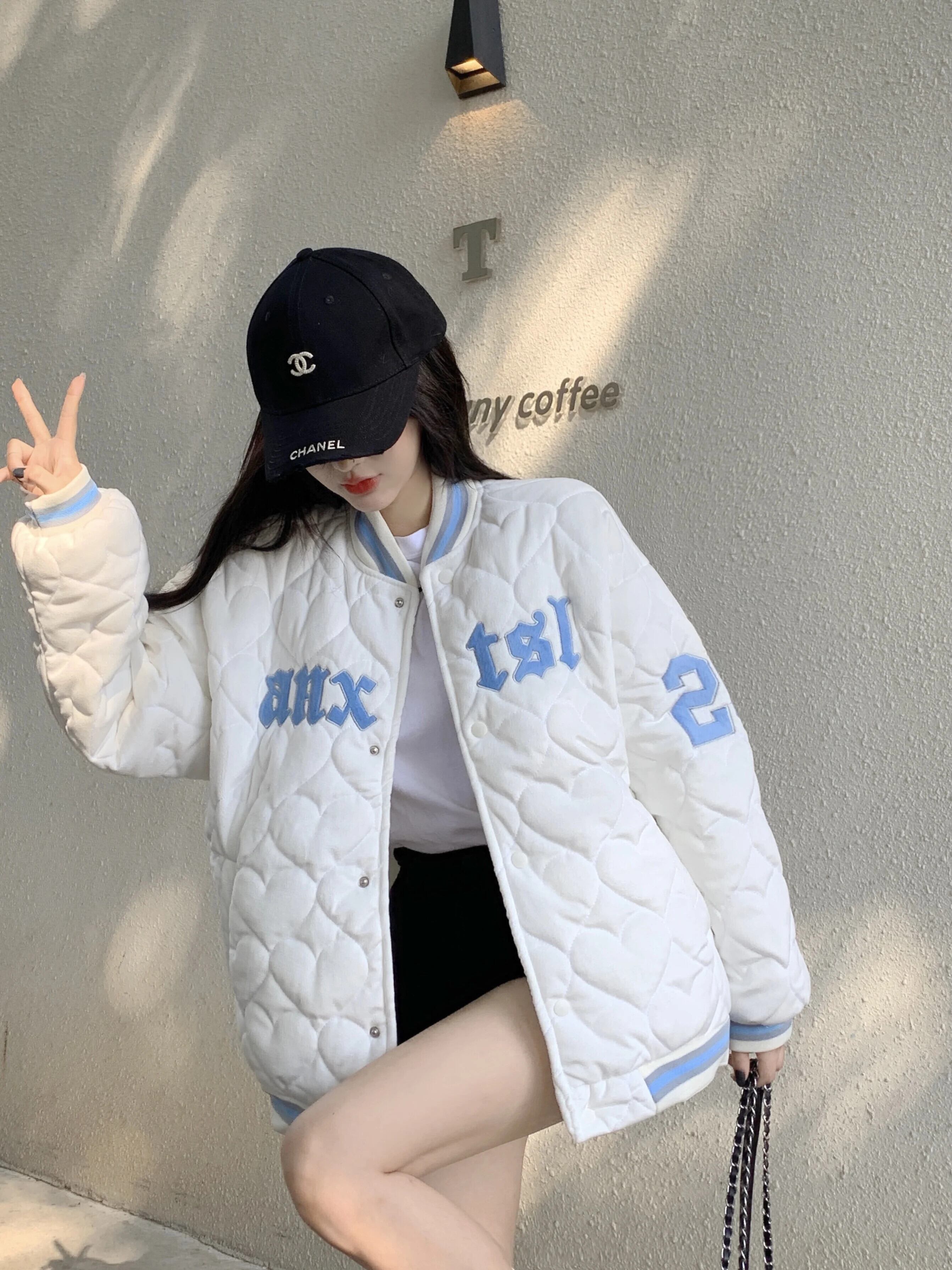 アメリカンホットガールレトロルーズコート秋/冬肥厚刺繍野球ジャージ綿コート コットン オータム 秋物 ウィンター 冬物