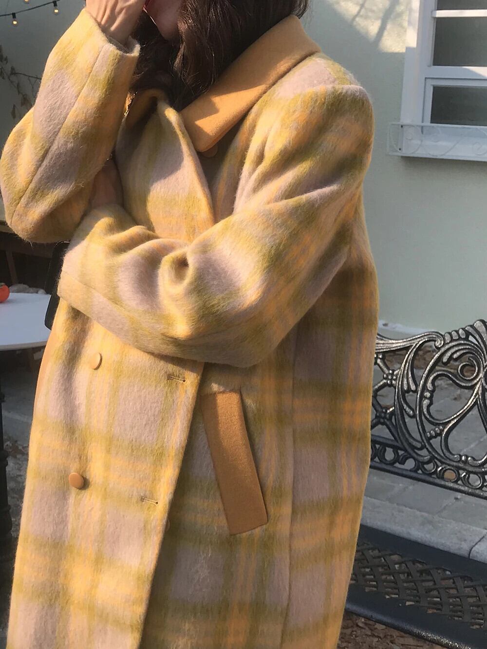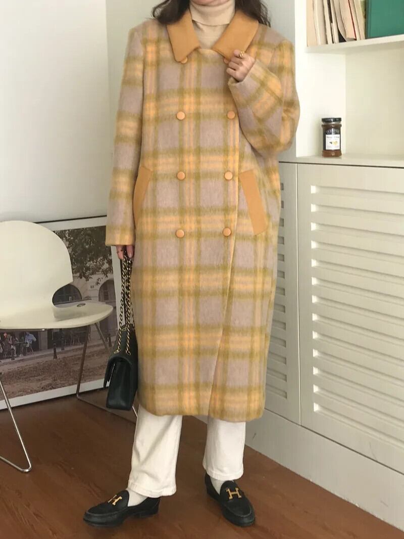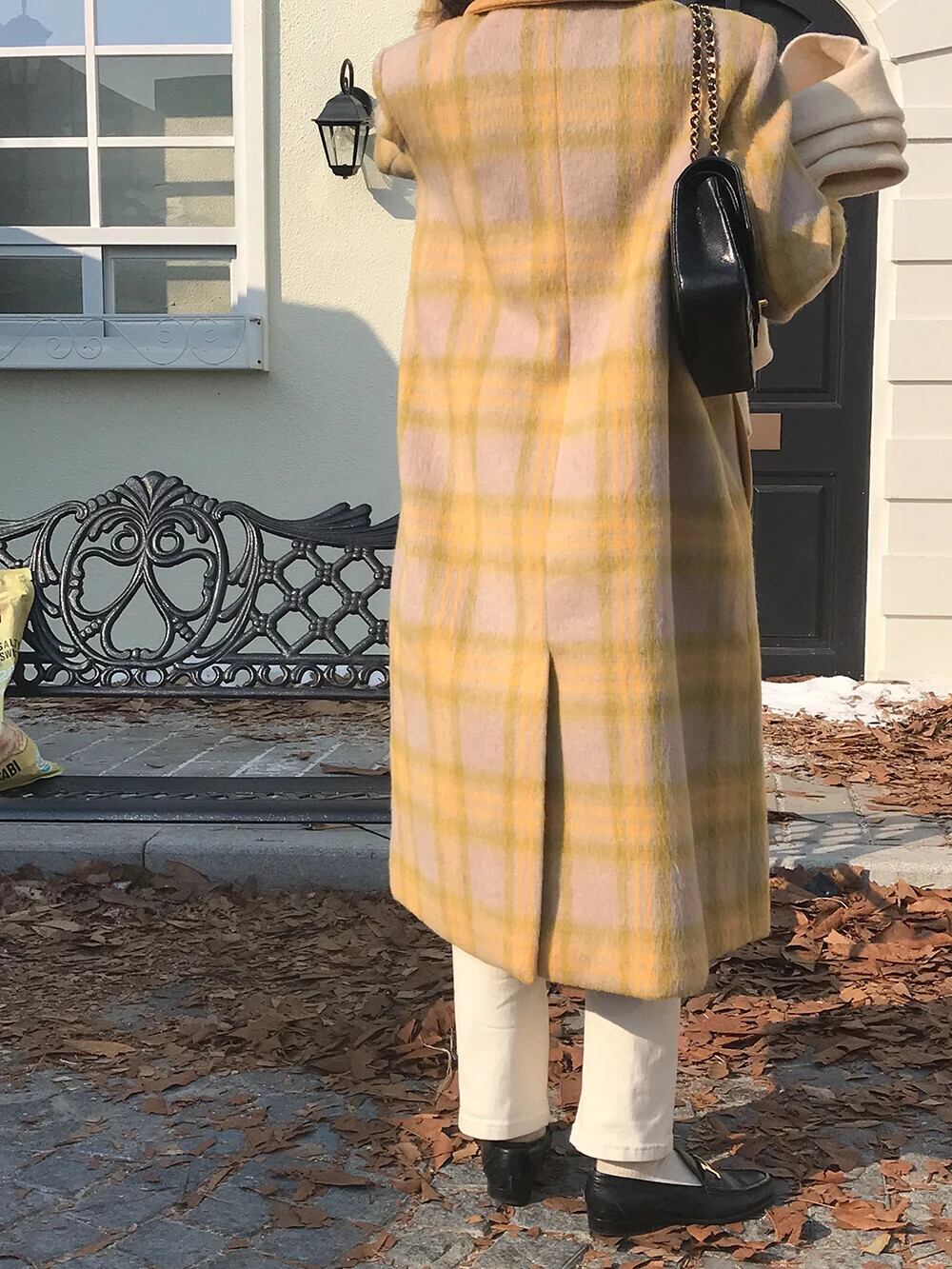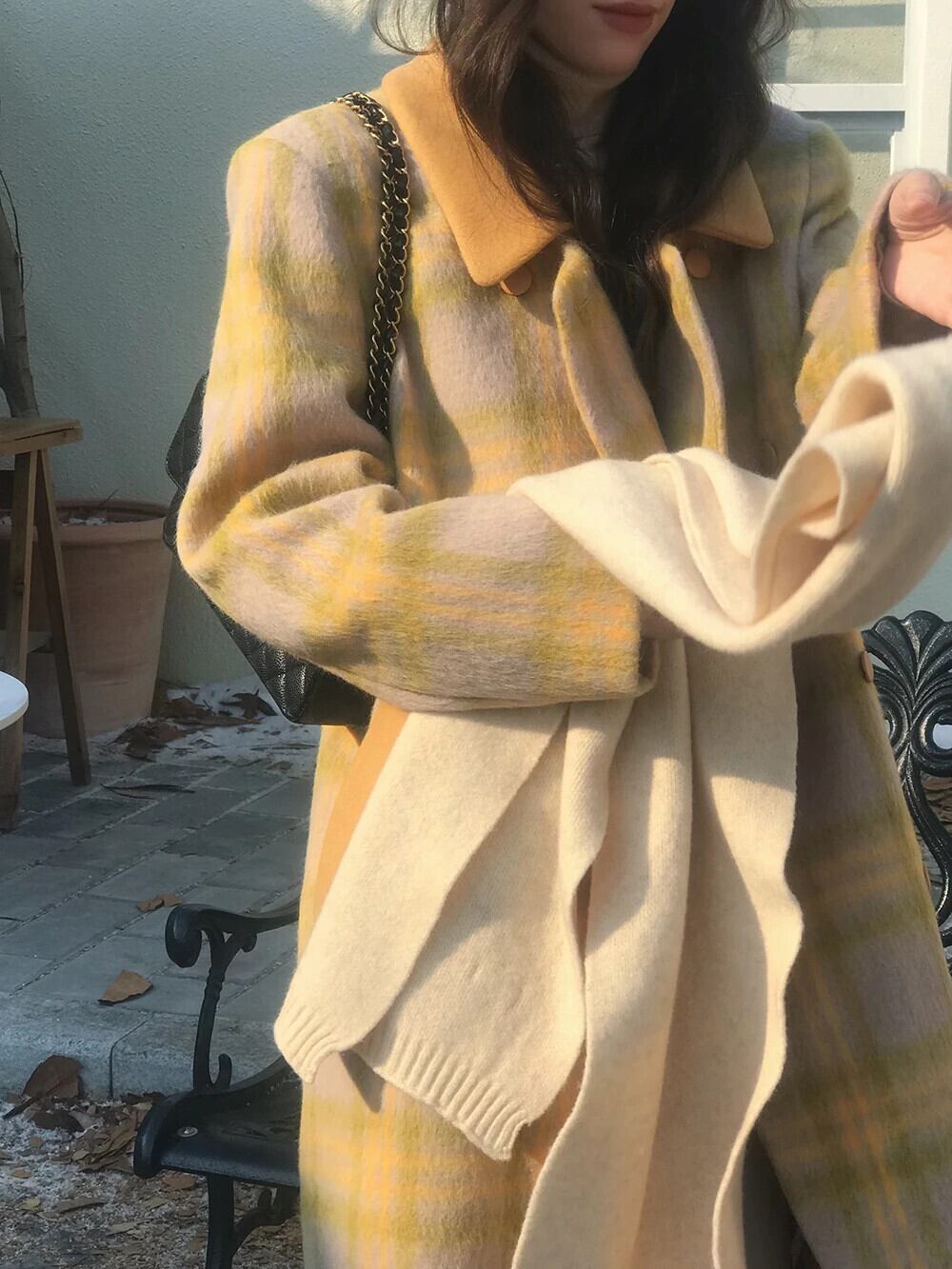 Sweet Hot Girl チェック柄ウールコート レディース 秋冬 ターンダウンカラー 長袖 プレッピースタイルコート ロング 大人ガーリー スウィート キュート カジュアル オータム 秋物 ウィンター 冬物