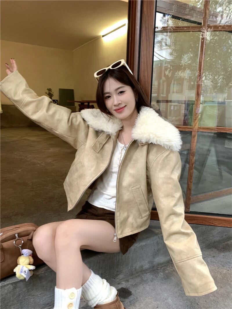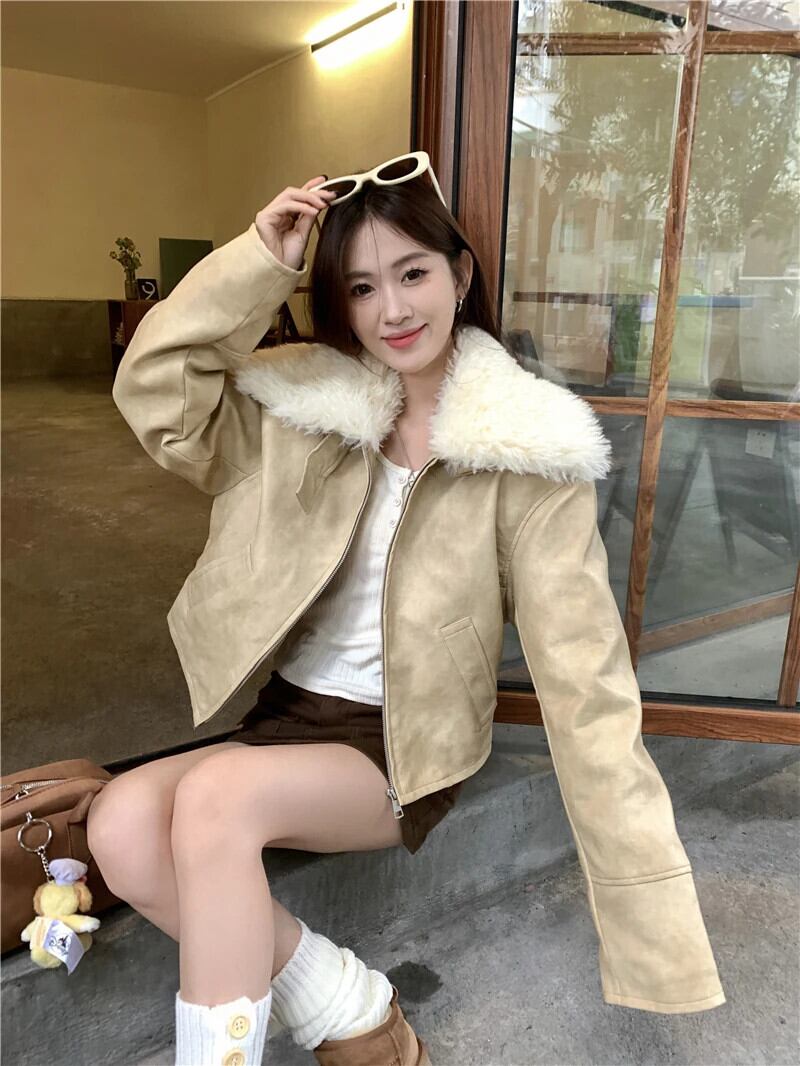 香港スタイル模造ラムファーラーペルレザージャケット秋と冬ルーズコットンジャケット オータム 秋物 ウィンター 冬物